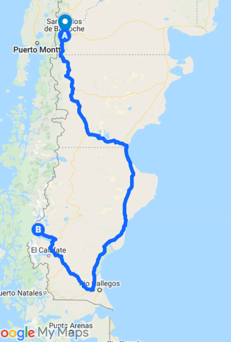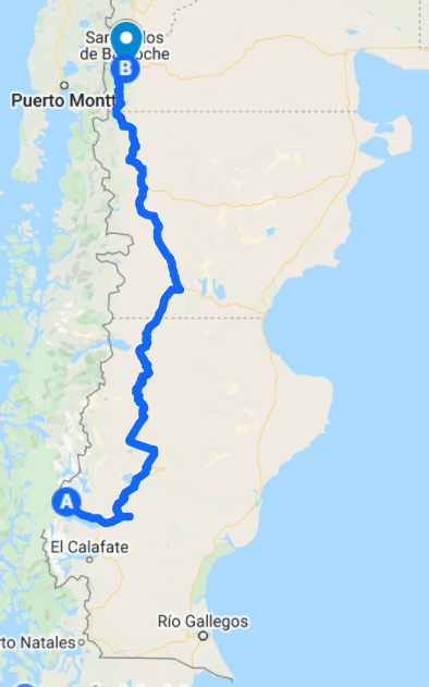 Pour situer un peu le trajet, nous devons longer la cordillère des Andes et par la même occasion suivre la frontière avec le Chili.