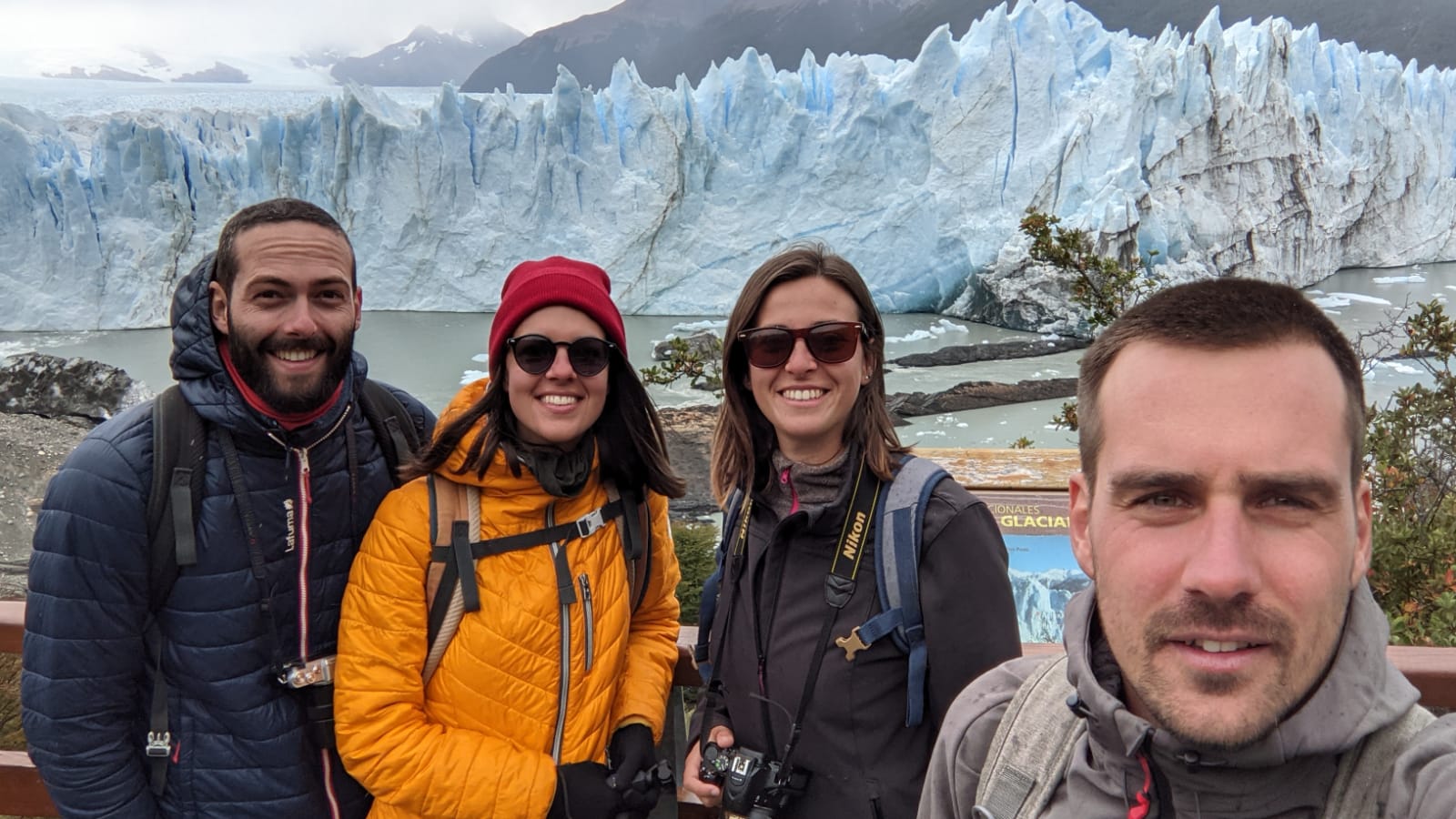 Équipés de nos bonnets, gants et doudounes nous arpentons les 4 km de passerelles aménagées pour voir le glacier sous différents angles et surtout de très près. Il gronde, il craque, nous avons tous les 4 les yeux rivés sur le glacier à faire des pronostics sur quel bout se détachera en premier. Nous avons d’ailleurs eu la chance de voir plusieurs morceaux, tomber au ralenti dans l’eau dans un fracas monstre.