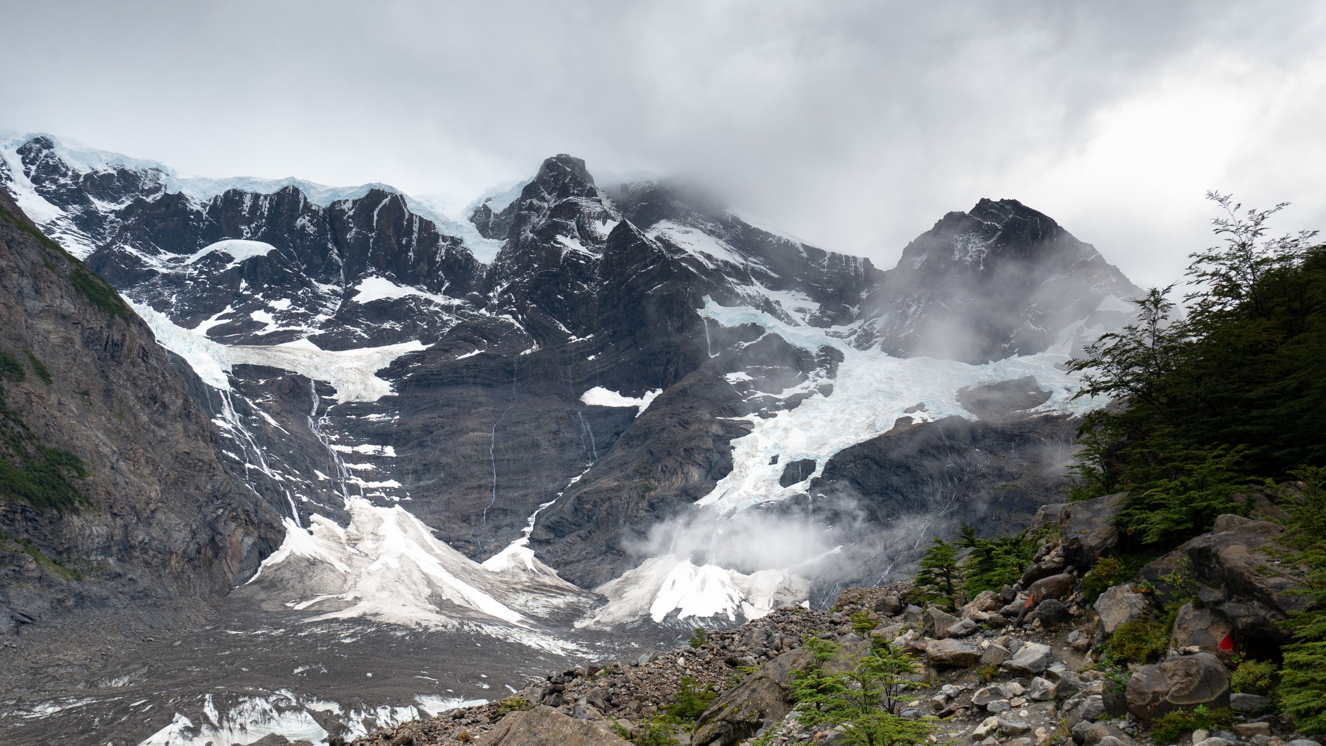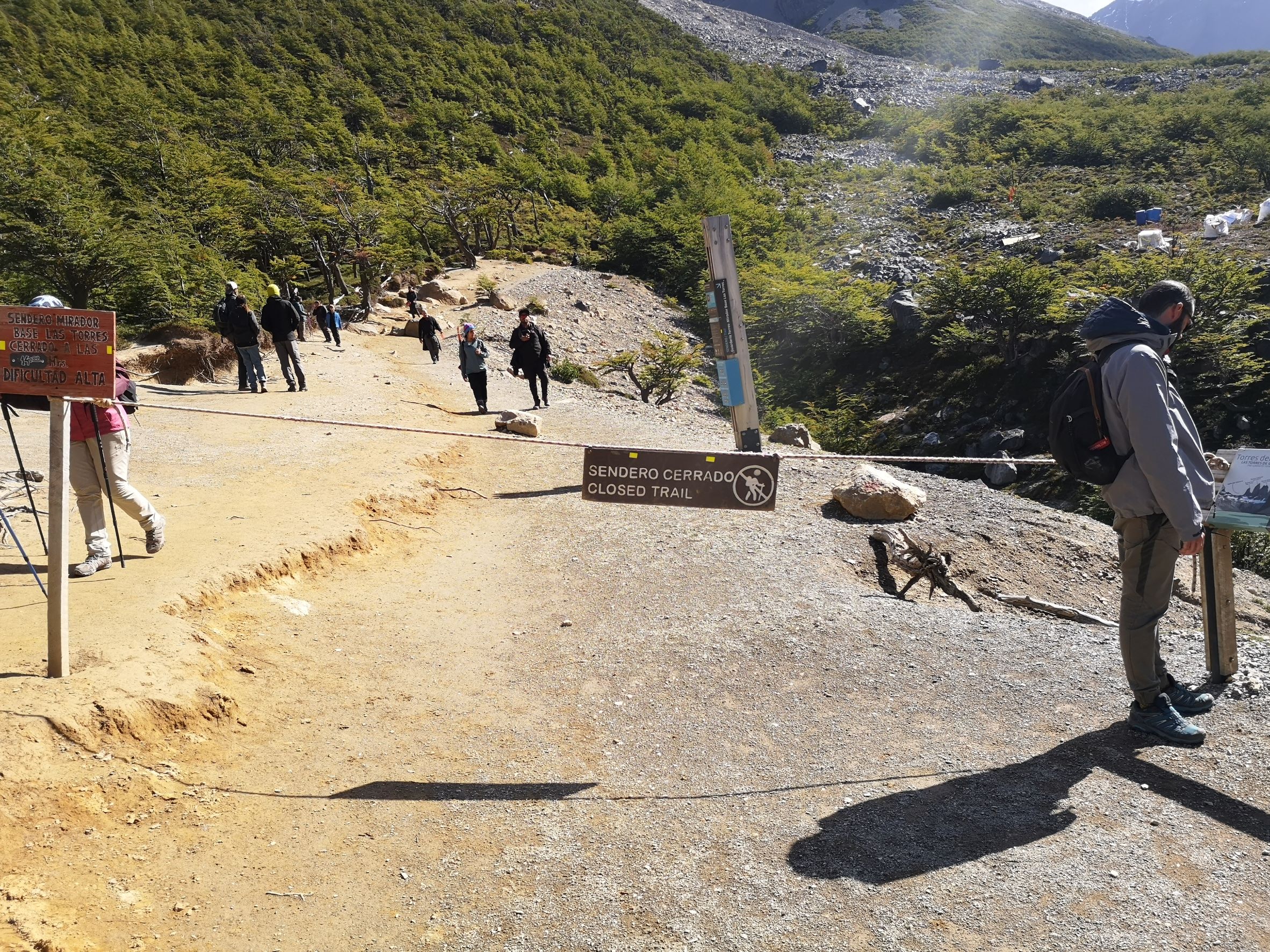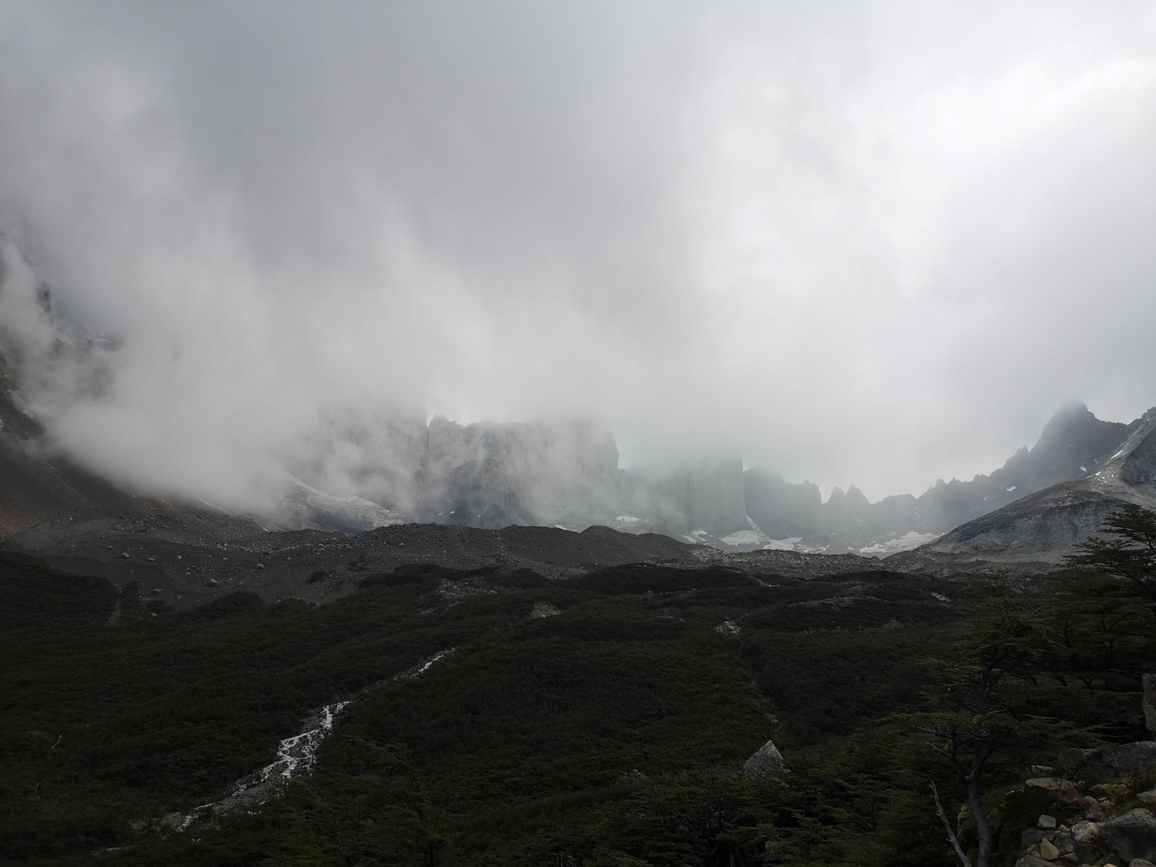 Nous passons devant le mirador du « Glacier Francès » puis dans un long et dernier effort arrivons enfin au « Mirador Britanico ». Comme prévu nous ne voyons rien… La pluie est maintenant un peu moins forte on décide d’attendre en espérant une petite éclaircie qui ne viendra jamais. La redescente est longue, heureusement il ne pleut plus mais nous avons froid étant trempés jusqu’au slip.