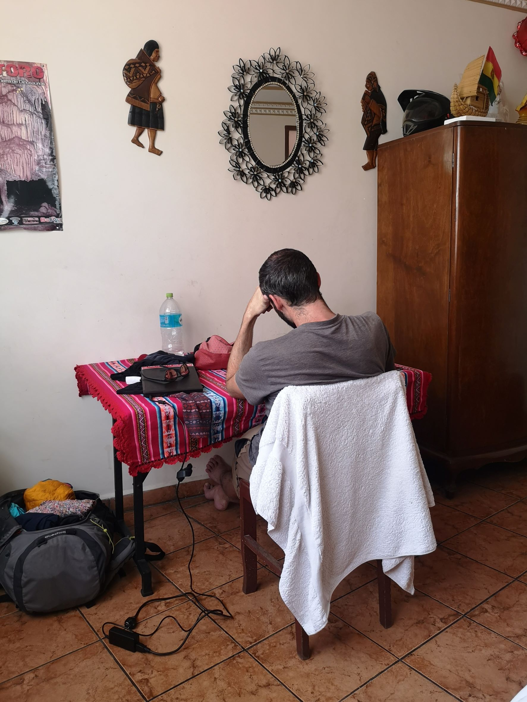 Nous nous rendons compte ici de la difficulté de la vie en Bolivie. De l’eau qu’il faut faire bouillir avant de la boire, de la chance d’avoir une machine à laver pour ceux qui peuvent se le permettre, de récolter l’eau de la douche dans des bassines pour s’en servir en chasse d’eau et essayer de peu consommer l’eau puisque la ville n’ouvre les vannes que du samedi au lundi pour remplir les cuves des particuliers. Ils nous disent très souvent : « en Bolivie, tout est possible mais rien n’est sur ».