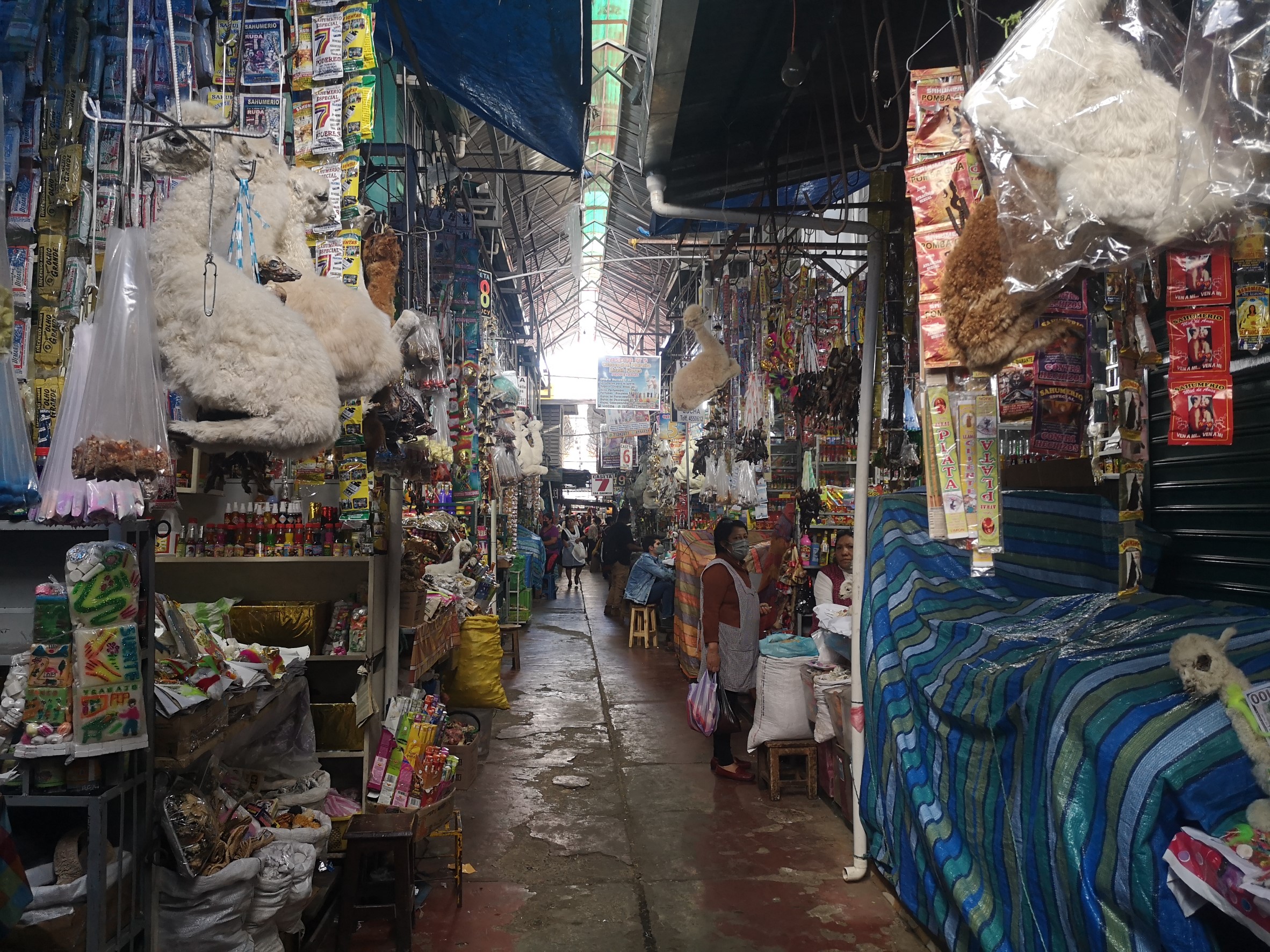 Alors non ce ne sont pas de belles peluches de lama qui sont accrochées ici et là mais bien ces petits lamas conservés au formol qui peuvent se vendre jusqu’à 300 bolivinos (=40€) (s’il on veut comparer, le midi nous mangeons le repas du jour au marché pour 10 bob (=1,35€).