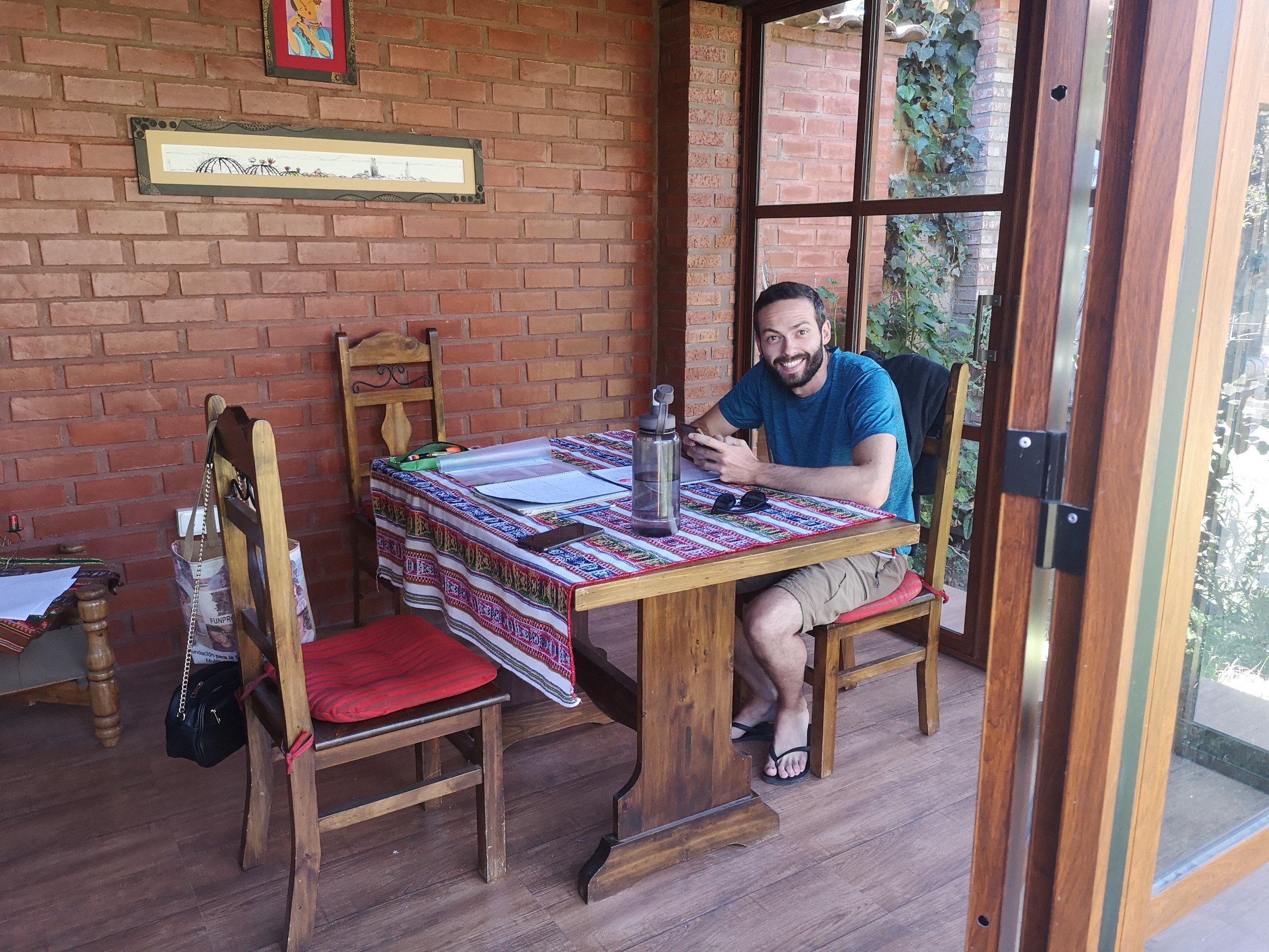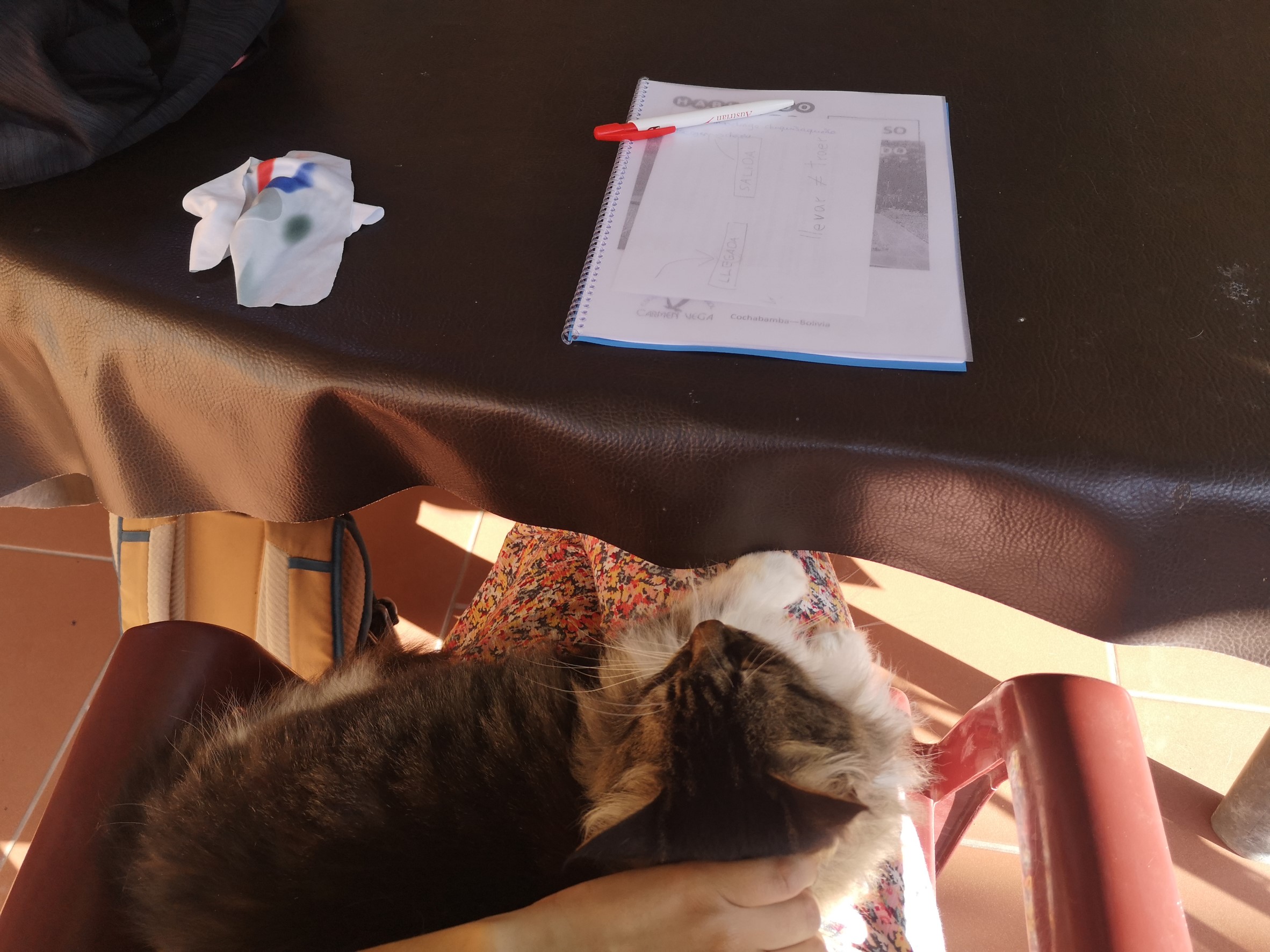 L’école est dans la maison de Jacques et Carmen, les propriétaires et les cours se font dans le jardin avec le chat sur les genoux ou bien dans des petites pièces au fond du jardin. Nous comptons sur ces 4h chaque matin pour progresser et être capables d’avoir des conversations un petit peu plus élaborées sans avoir à mimer la moitié des phrases (même si on est fan du time’s up hein, ce n’est pas de tout repos de gesticuler comme ça XD)