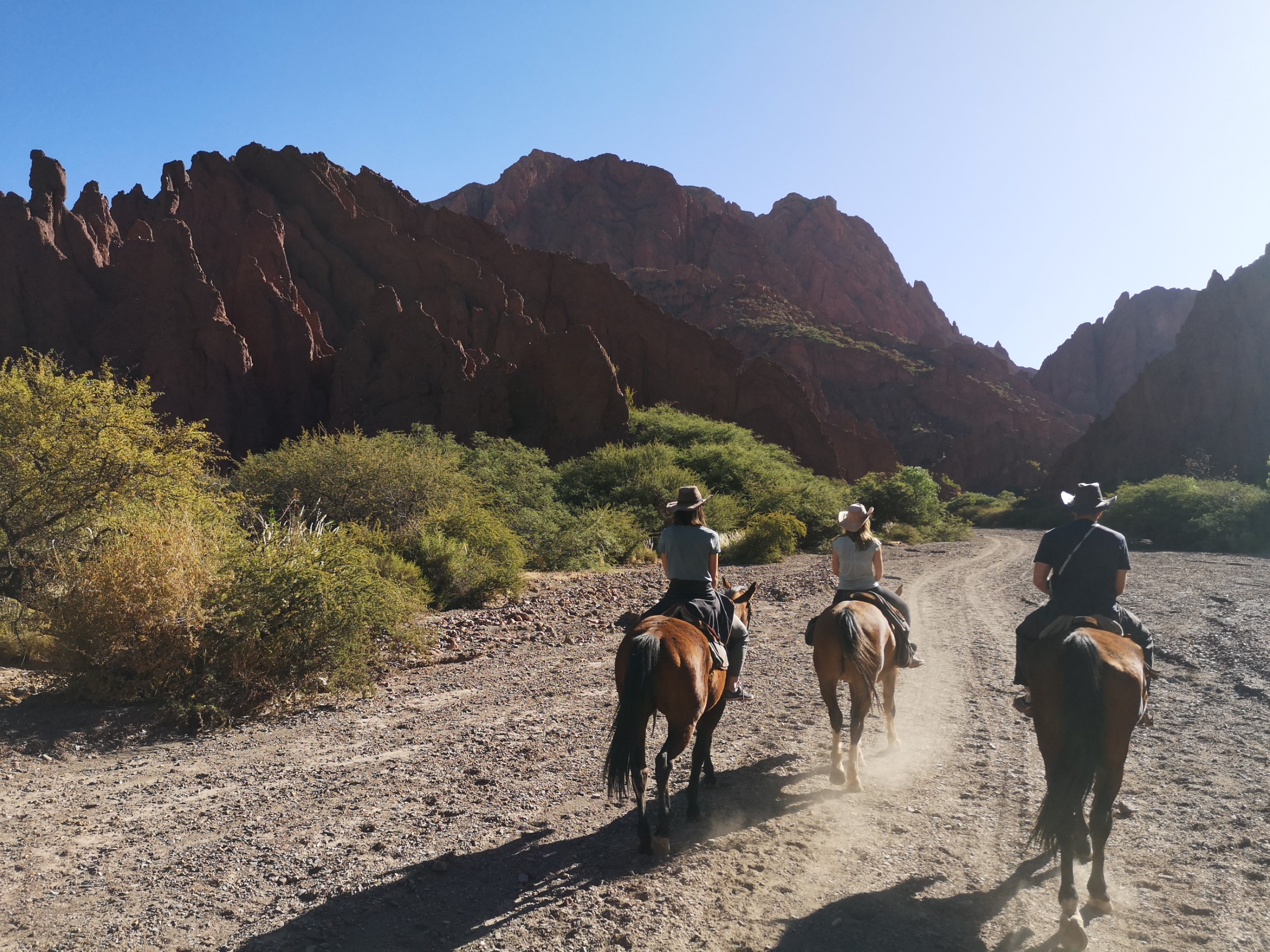 L’entrée du canyon se fait par la rouge et impressionnante « Puerta Del Dialo » puis nous continuons vers la « Valle de los Machos » où se dressent des cheminées de fées dans une roche toujours aussi rouge et sublimée par de nombreux cactus. C’est l’entrée du « Canyon del Inca » qui marque la fin de la balade et nous devons faire demi-tour.