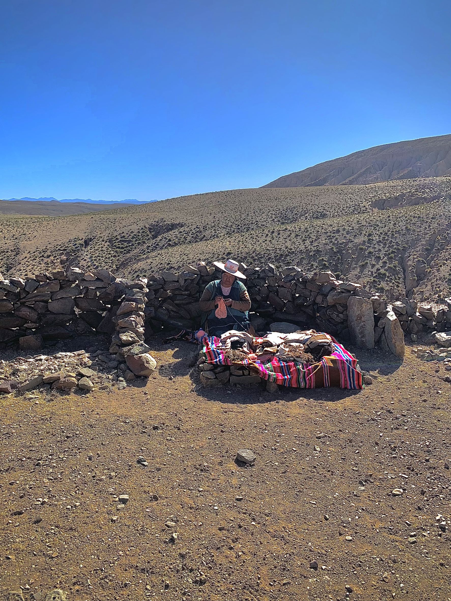 C’est sous un ciel brillant de mille feux et une voie lactée resplendissante que nous arrivons à l’entrée du prometteur parc Avaroa. Nous passons la nuit au village de Quetana chico. Il est l’heure de mettre gants, bonnet, tour de cou et mérinos intégral pour aller se coucher. Il fait 4° dans la chambre et il n’y a que de l’eau glacée, La douche ? On verra ça plus tard !