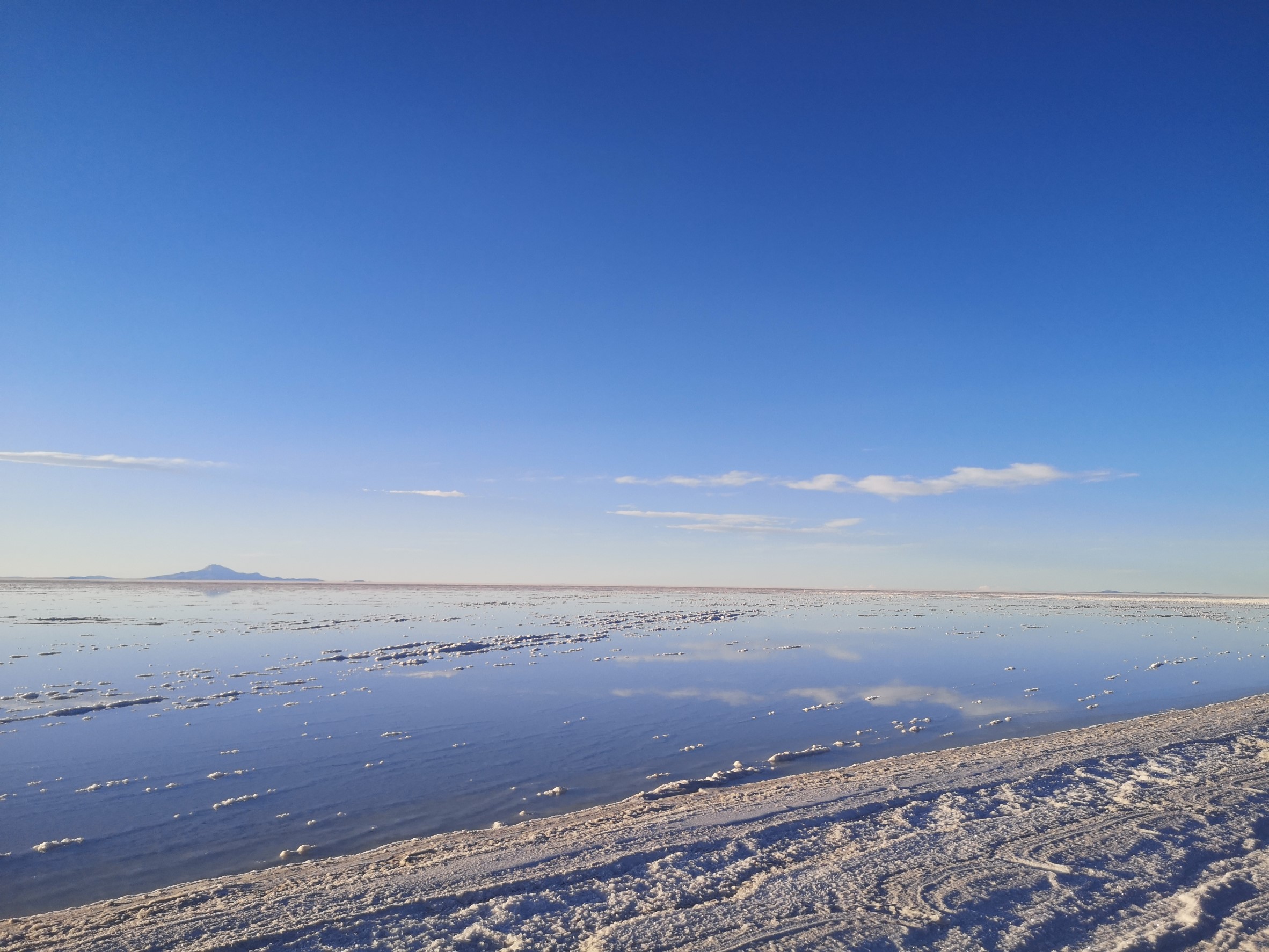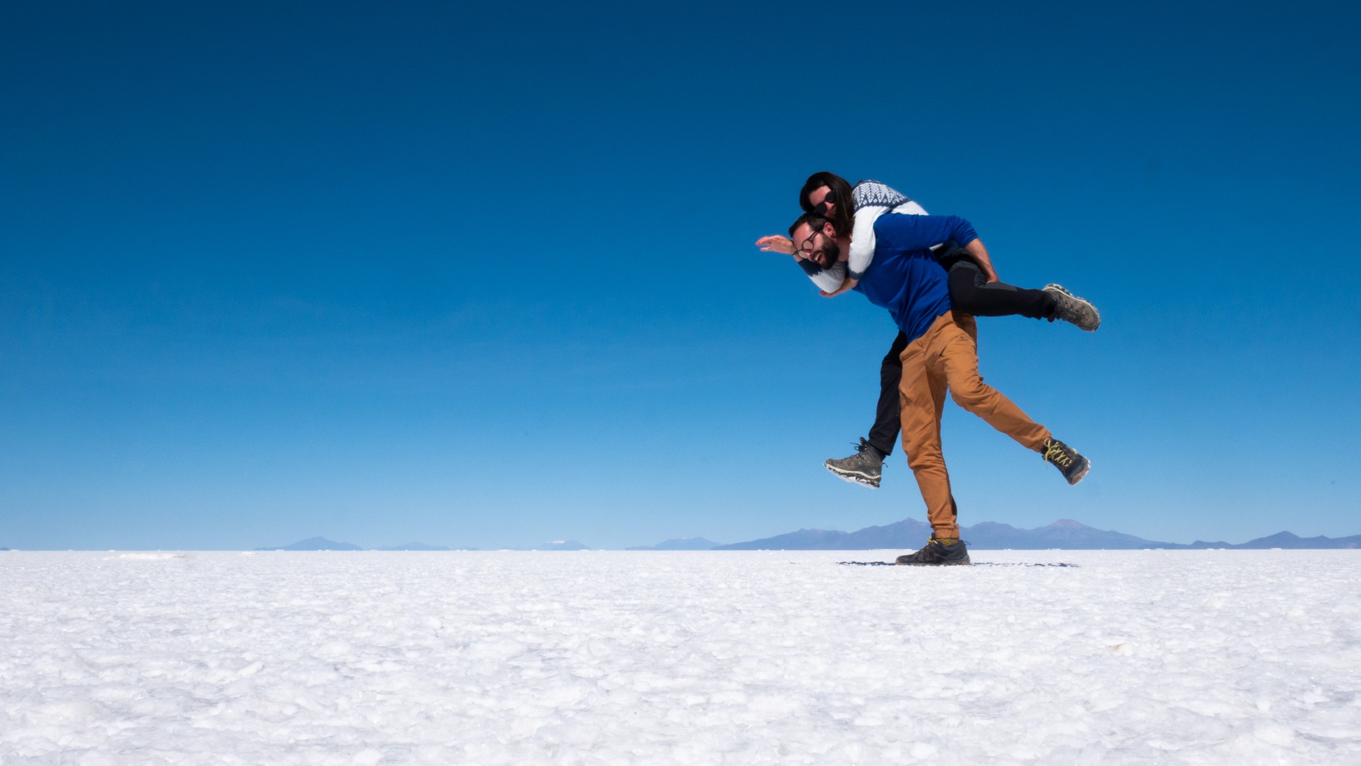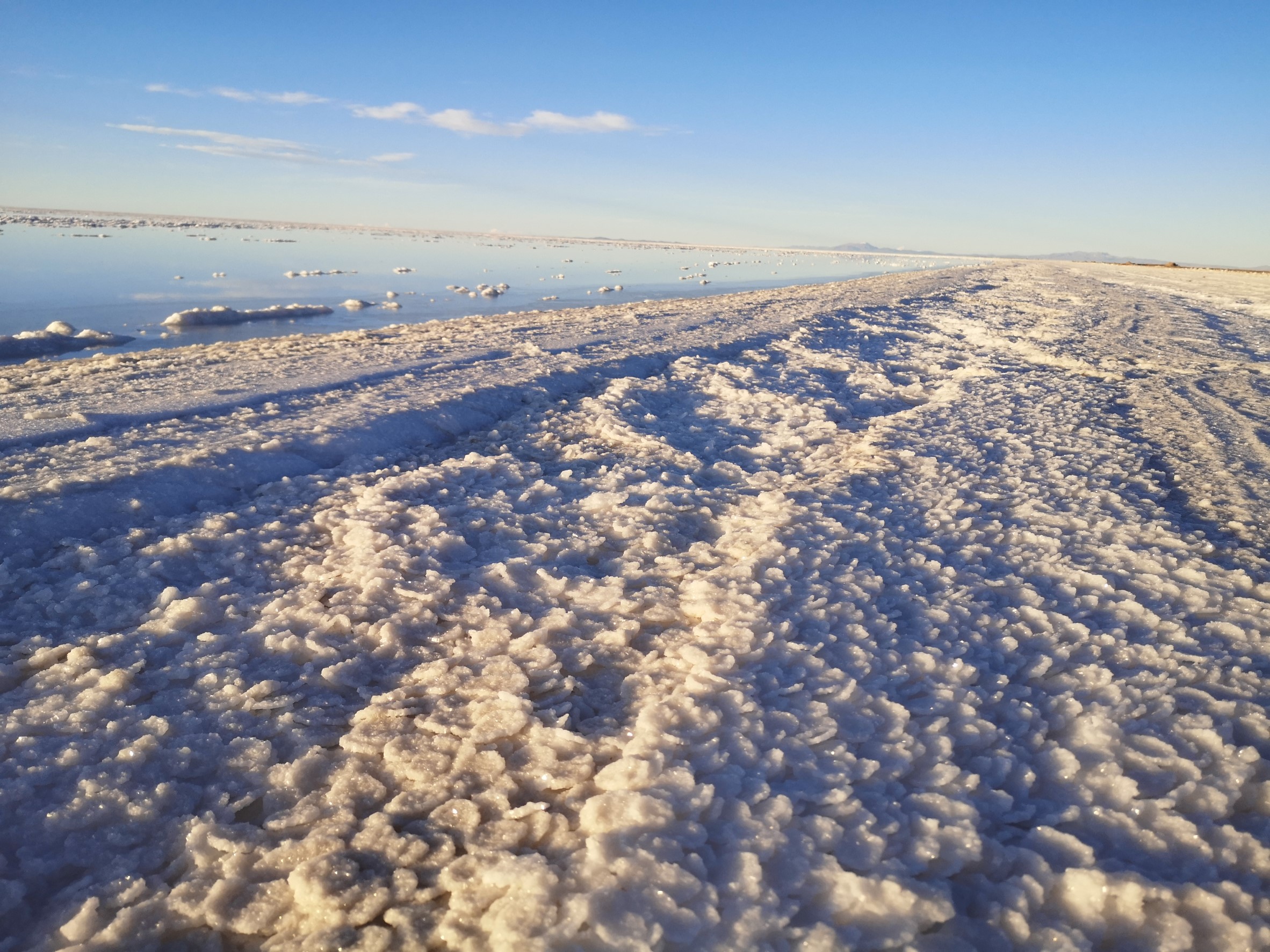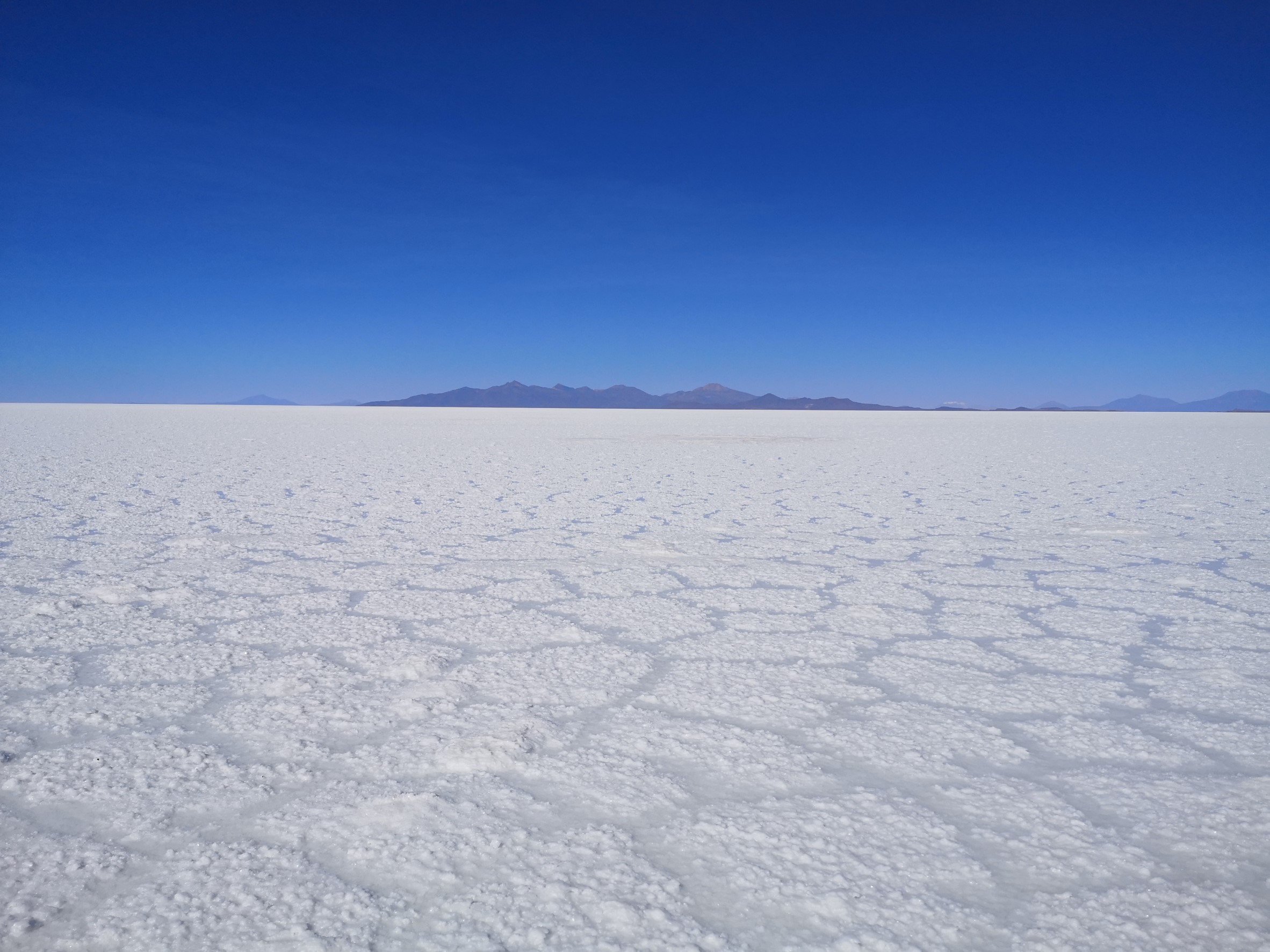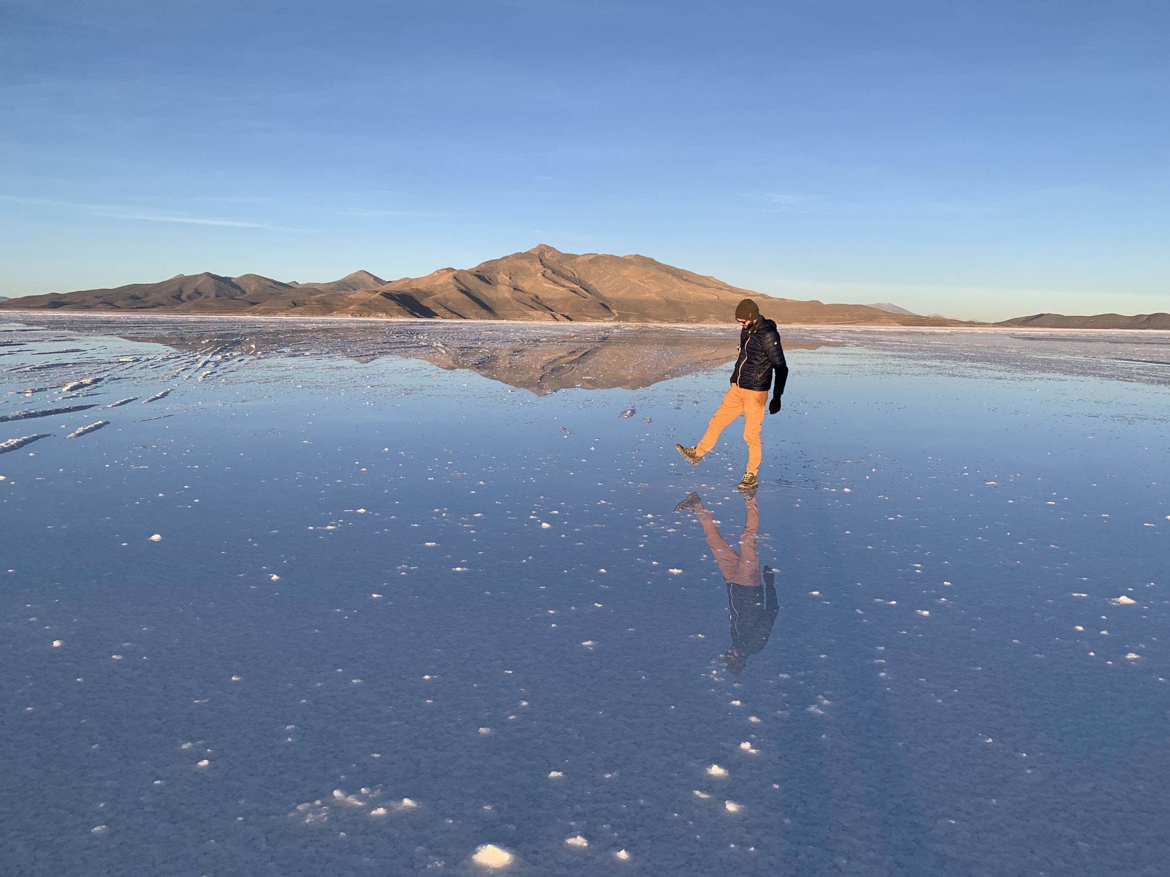 Quand on voit cette étendue immense de sel, d’un côté blanche craquelée et de l’autre avec une fine pellicule d’eau qui la recouvre, dans laquelle se reflète les montagnes qui l’entourent tout ça dans un décor pastel…Il n’est pas facile de retenir ses larmes.