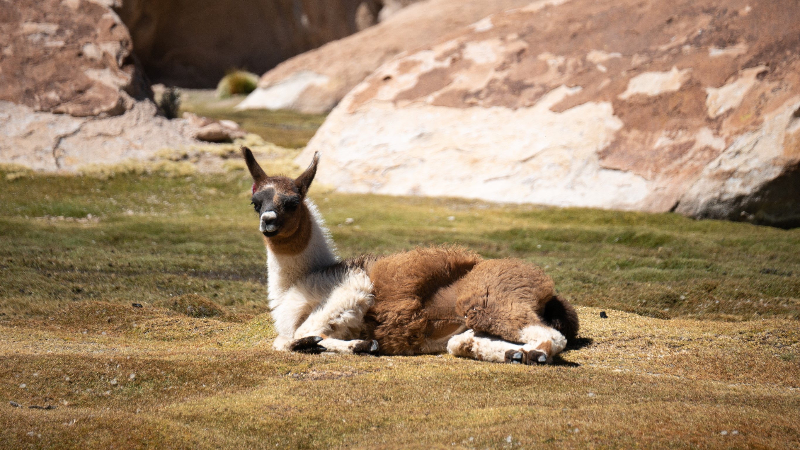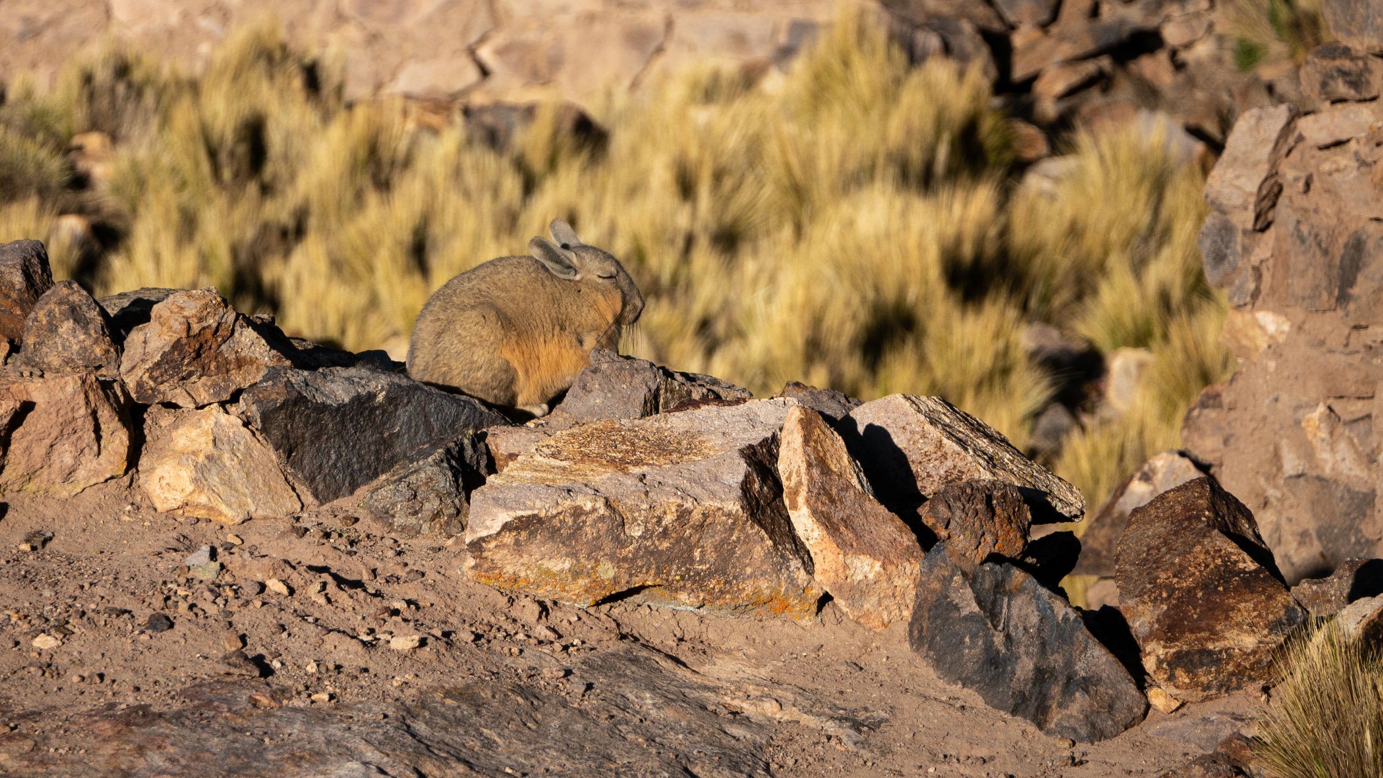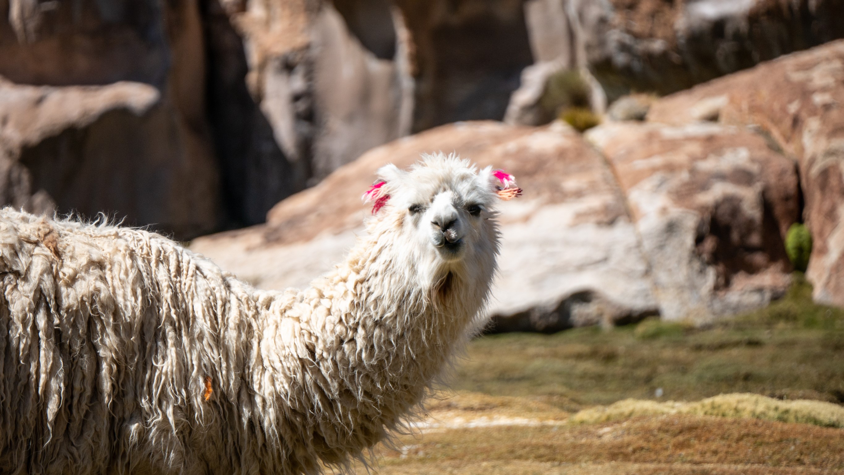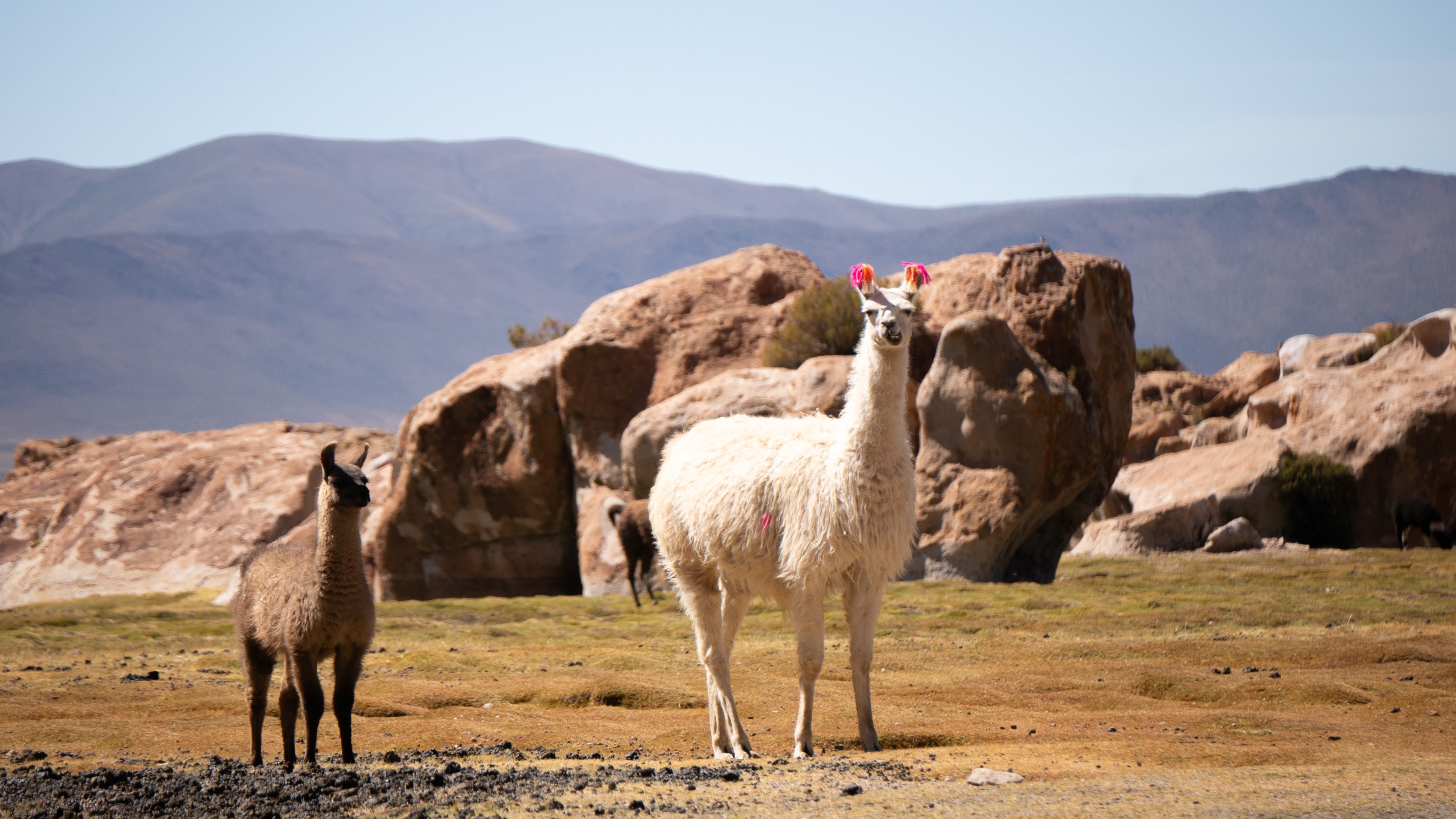 Nous nous arrêtons au milieu des troupeaux de lamas avec leurs petits pompons aux oreilles (trop mignons) pour que les propriétaires les reconnaissent. Passons par les ruines du Pueblo Fantasma (pas notre stop préféré, aucune information sur le site..) heureusement que des viscaches montrent le bout de leur nez pour nous émerveiller.