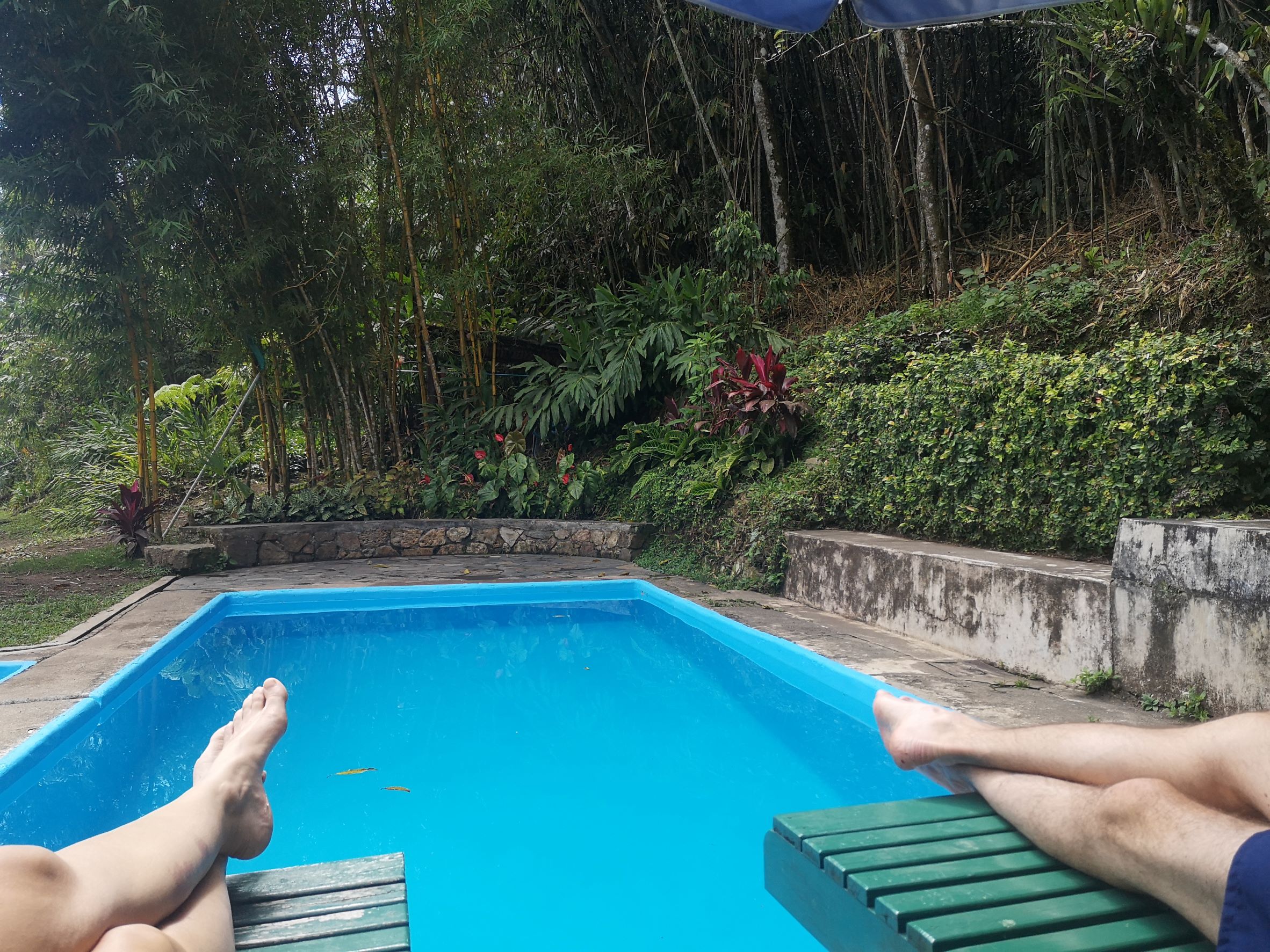 Notre hôtel, conseillé par devinez qui ? (et oui Mel & Jo toujours <3) est super. Le jardin tropical est immense et coloré. Il y a des piscines et une vue superbe sur les montagnes recouvertes de forêt.