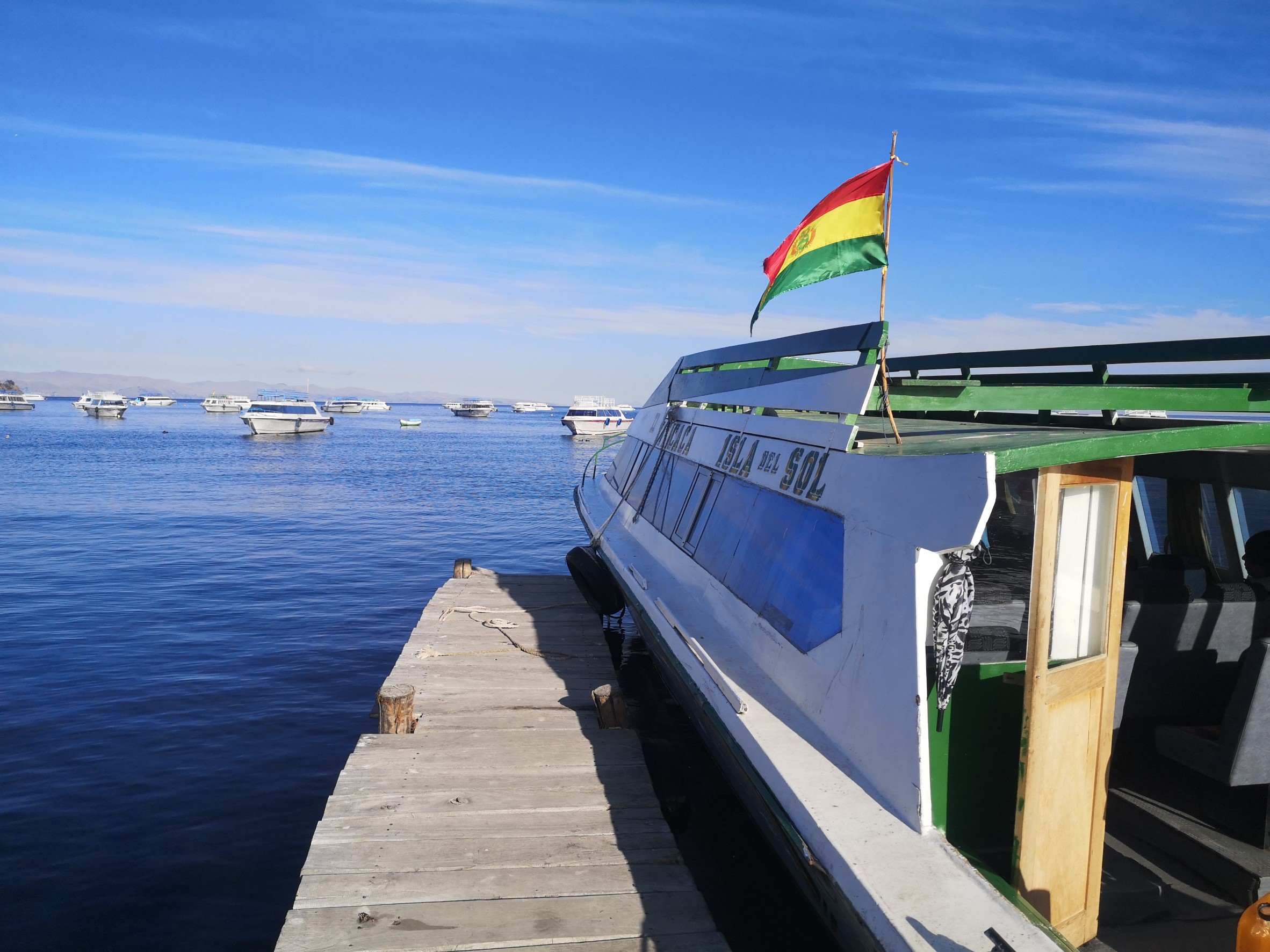 Après avoir regardé le coucher de soleil et mangé en leur compagnie nous passons notre dernière nuit ici et partons le lendemain au petit bonheur la chance pour trouver un bateau qui nous ramènera à Copacabana. Pourquoi au petit bonheur la chance ? Parce que nous avons demandé les horaires du bateau à une 10aine de personnes différentes et avons obtenu autant d’horaires différents…