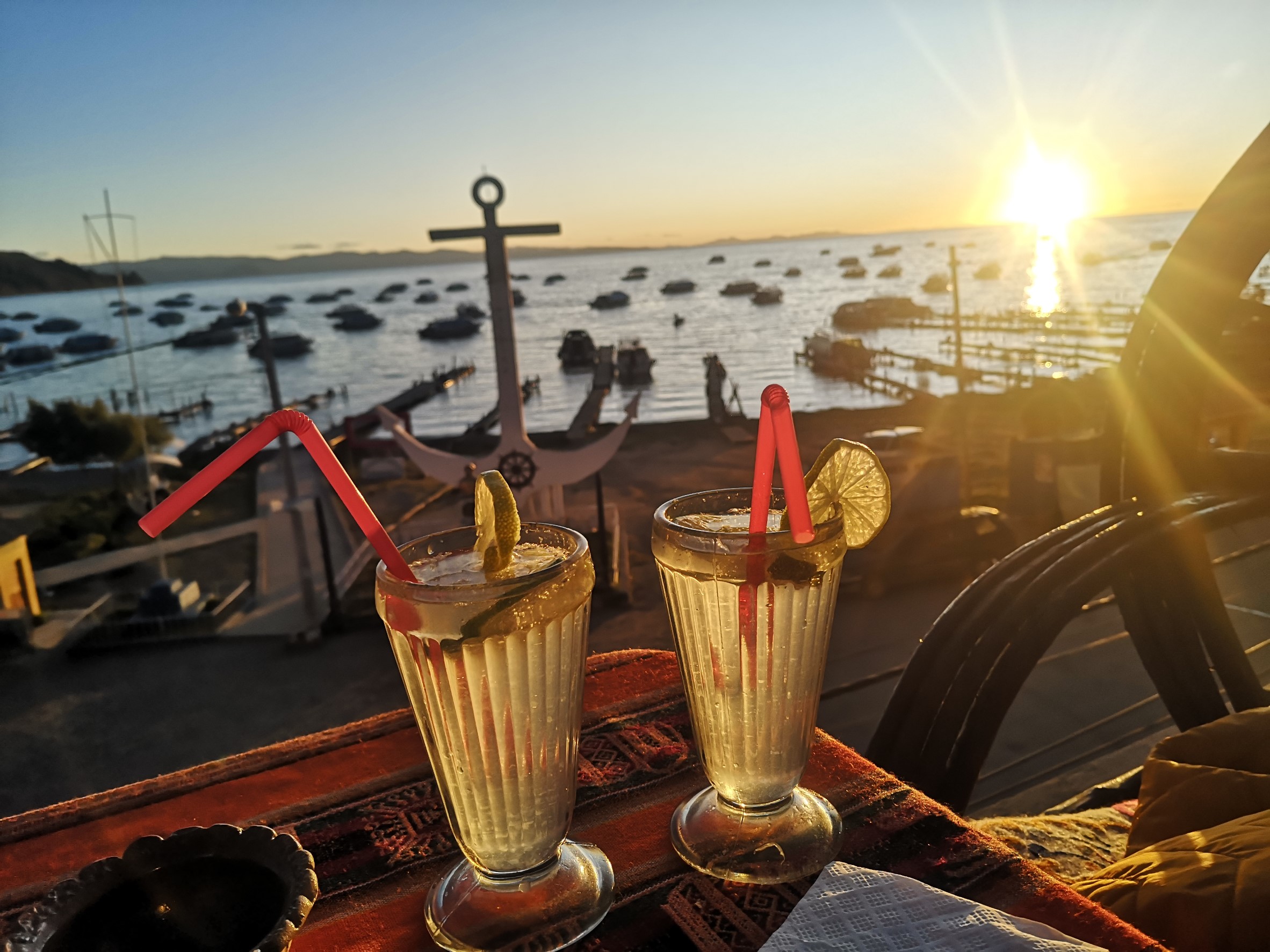 C’est en admirant le coucher du soleil sur le lac Titicaca, une caïpirinha au bout de la paille et du Bob Marley dans les oreilles que nous faisons nos adieux, le cœur en miette, à notre merveilleuse Bolivie.