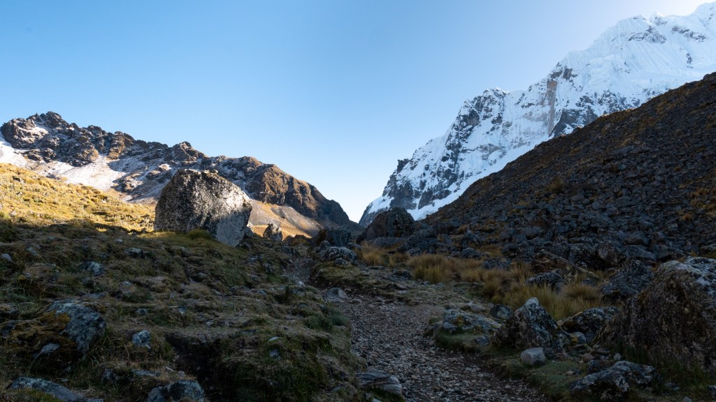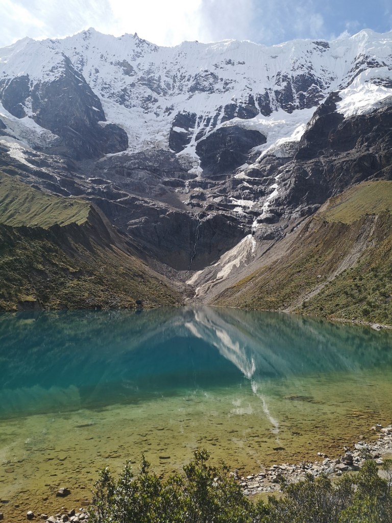 1er jour : Nous arrivons à Soraypampa. Nous n’avons que très peu de marche aujourd’hui, alors nous attendons quelques heures que les touristes venus avec une agence fassent leur marche et repartent pour nous lancer à l’assaut de la « Laguna Humantay » seulement 6,4 km et 426 m de dénivelé positif mais à 4200 m d’altitude, dur dur de reprendre son souffle. Comme ils disent ici « Vale la pena » nous sommes très peu en haut et la Laguna est superbe. Les montagnes et les glaciers qui l’entourent, nous avaient manqués. Après 4h passées là-haut nous redescendons dans notre auberge où notre hôte nous a gentiment préparé des petites bouillottent pour qu’on puisse se réchauffer dans notre lit ❤