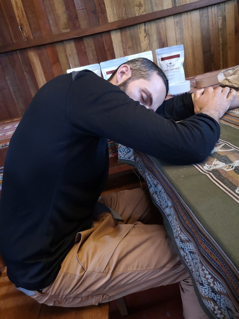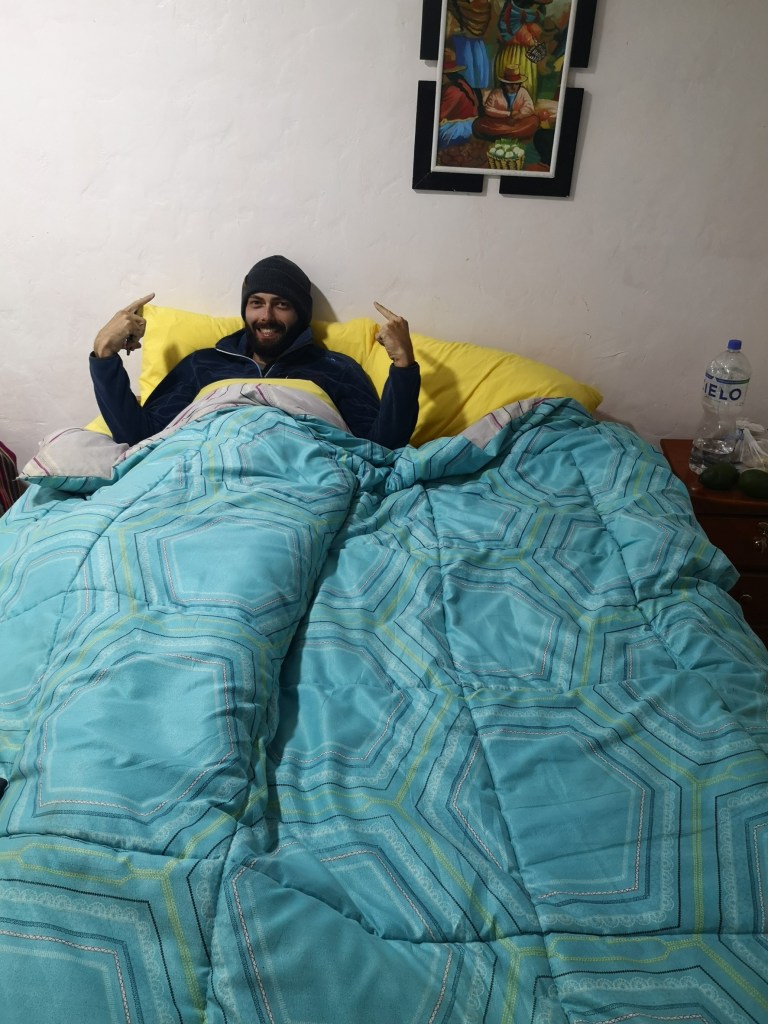 A peine remit le voilà le 3ème jour à se faire une intoxication alimentaire avec le jus de granadilla que nous avons prit sur le sentier pour fêter mon anniversaire. Le pauvre a passé son après-midi à dormir et vomir, d’ailleurs si le jardin de l’auberge où nous avons trouvé refuge est aussi beau c’est qu’il a eu beaucoup d’engrais ^^
