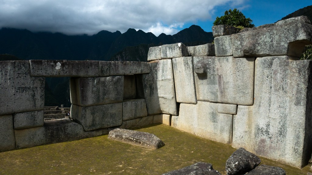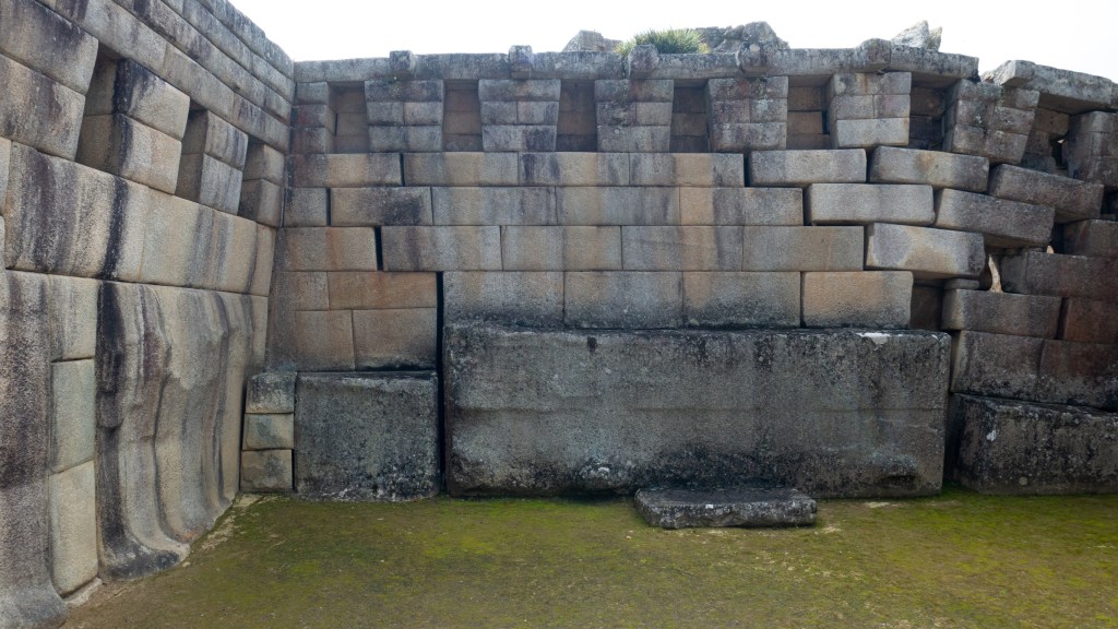 Nous passons par le fameux point pour prendre LA photo la plus connue du Machu, puis par les habitations, le temple du soleil (parfaitement aligné avec les équinoxes), les terrasses (absolument magnifiques), la place sacrée où les pierres sont parfaitement alignées, découpées, un laser n’aurait pas fait mieux, les miroirs d’eau (on suppose que d’ici ils observaient le ciel qui se reflétait dans l’eau, les fenêtres alignées elles aussi avec les équinoxes.