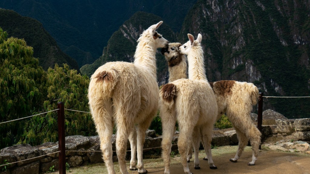Il y a des lamas aussi sur le site qui sont tranquilles en train de brouter. Les touristes juste devant nous décident de se prendre en selfie avec les bébés lamas, ils leur courent après en leur faisant peur, ils perdent leur maman et voila les touristes en train de les agripper par le cou alors qu’ils se débattent, pour faire leur maudit selfie ! On est écœurés devant ce spectacle !!!