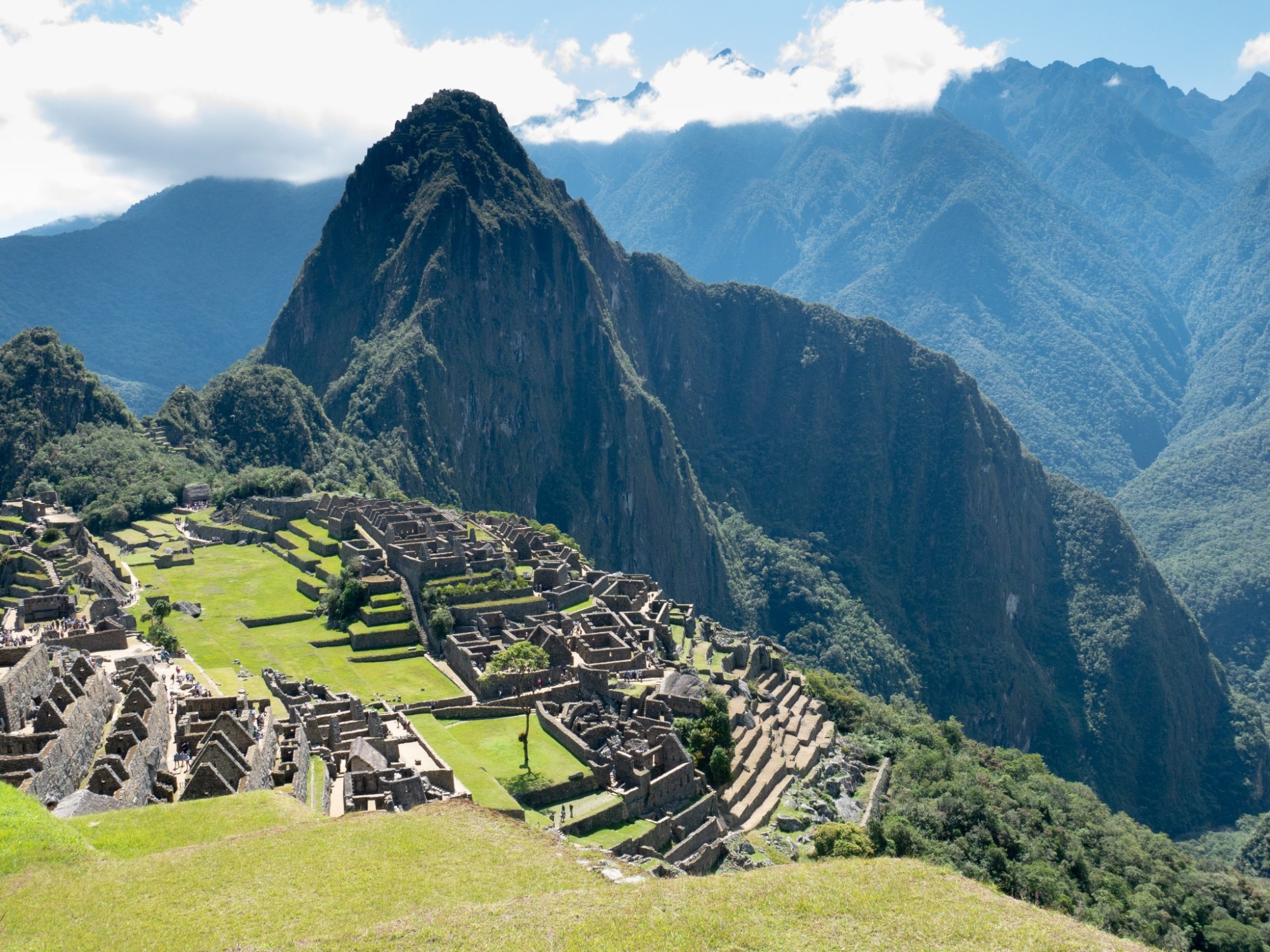 Nous passons par le fameux point pour prendre LA photo la plus connue du Machu, puis par les habitations, le temple du soleil (parfaitement aligné avec les équinoxes), les terrasses (absolument magnifiques), la place sacrée où les pierres sont parfaitement alignées, découpées, un laser n’aurait pas fait mieux, les miroirs d’eau (on suppose que d’ici ils observaient le ciel qui se reflétait dans l’eau, les fenêtres alignées elles aussi avec les équinoxes.