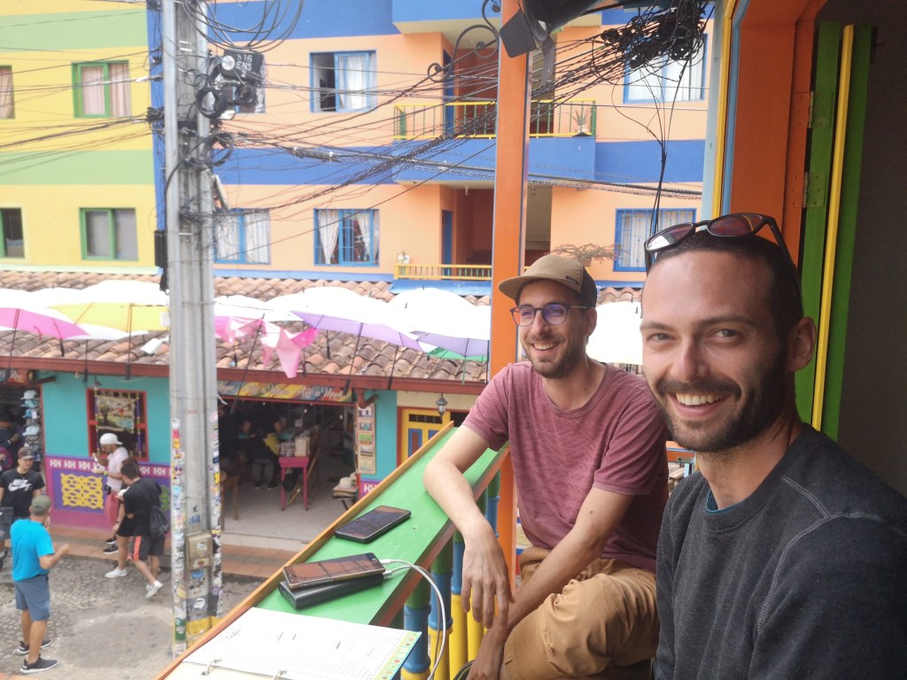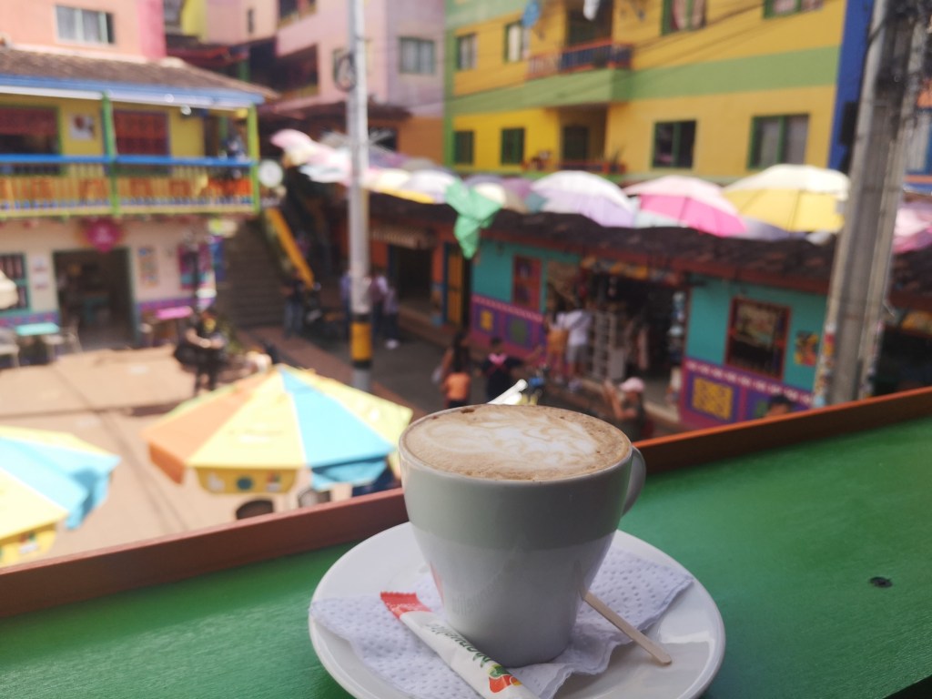 Colombie oblige, une fois les rues arpentées et un déjeuner local avalé, nous finissons avec un café dans la main, cette fois ci perchés sur un balcon, nous permettant de regarder les passants.