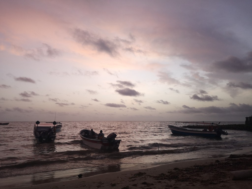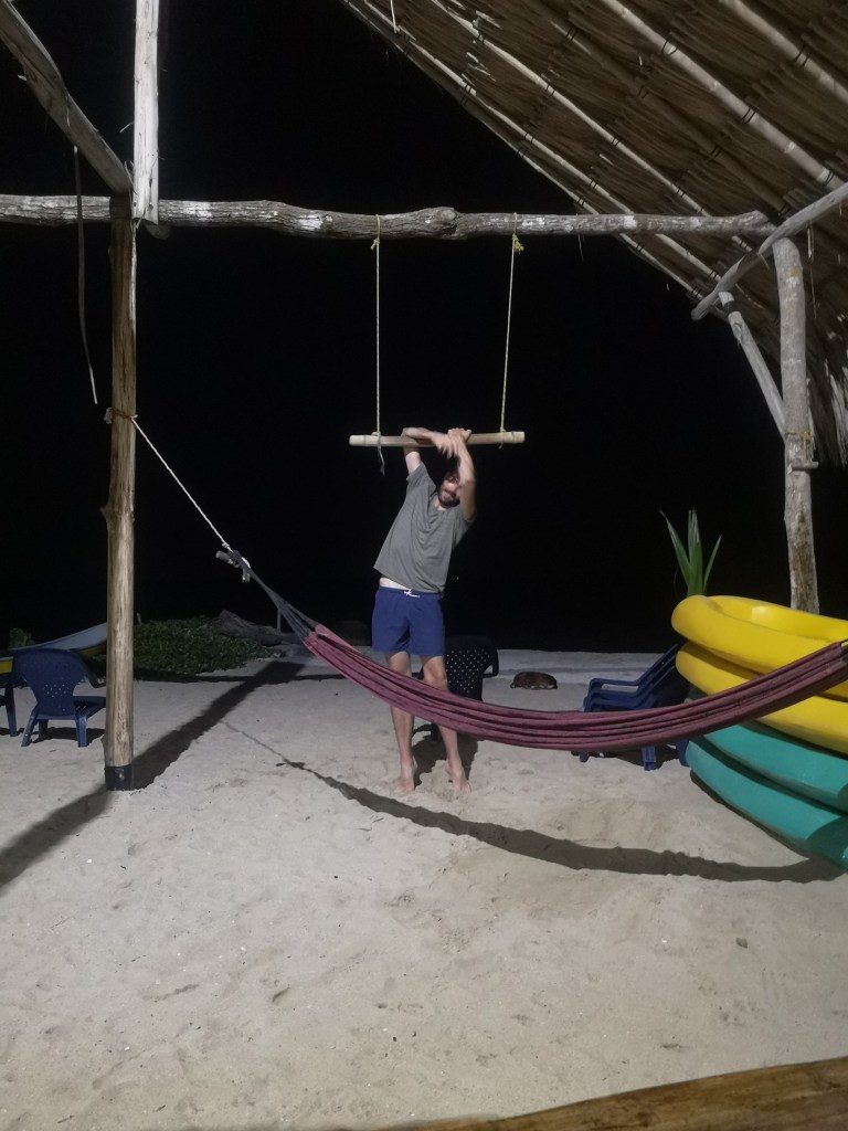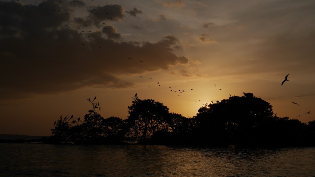 Nous partons avec notre conducteur de lancha voir le coucher de soleil sur l’île aux oiseaux, puis, après en avoir prit plein de nez à cause de l’odeur des fientes, nous arrivons sur une plage.