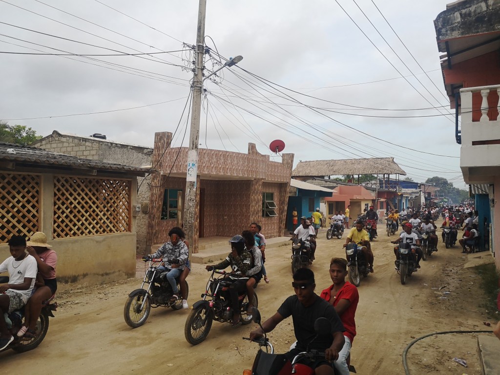 Il s’agit de passage de chevaux, devancés par des motos faisant un maximum de bruit, dans la minuscule rue principale et de les lancer à toute vitesse.