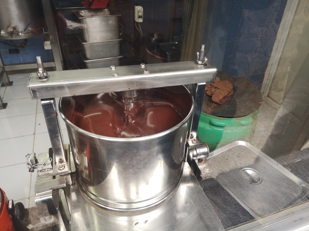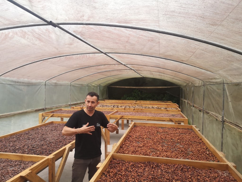 Nous regardons aussi le processus de transformation du cacao avant d’arriver à la meilleure partie de la visite, la dégustation.