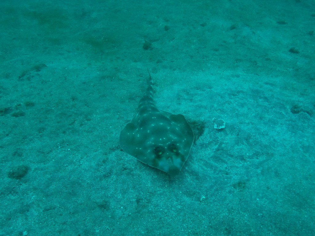 D’ailleurs, la dernière raie de notre dernière plongée est venue nous voir de très très près, si Damien tendait le bras,il la touchait! Elle est passée puis repassée, elle nageait au dessus de nous pour jouer avec les bulles de nos respirations. Puis après plusieurs minutes, elle est parti et nous sommes remontés émerveillés comme jamais.