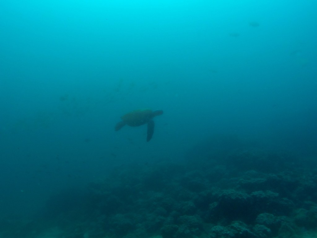 Nous voyons aussi 2 énormes raies pastenagues et des tortues qui nous tournent autour l’air de dire