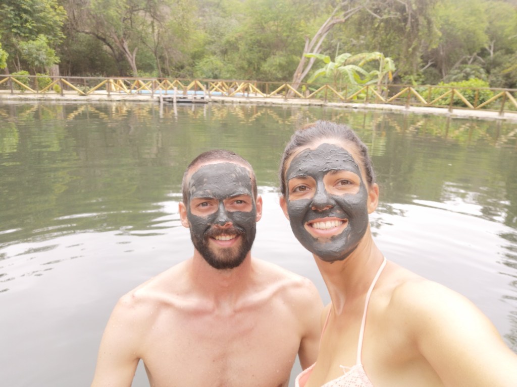 Nous nous attendions à une eau chaude comme dans tous les autres bains thermaux que nous avons fait mais non ^^, l’eau à 24° et l’absence de soleil ne nous encourage pas à rester des heures. Nous prenons quand même le temps de nous faire tout beaux grâce au masque de boue 😄