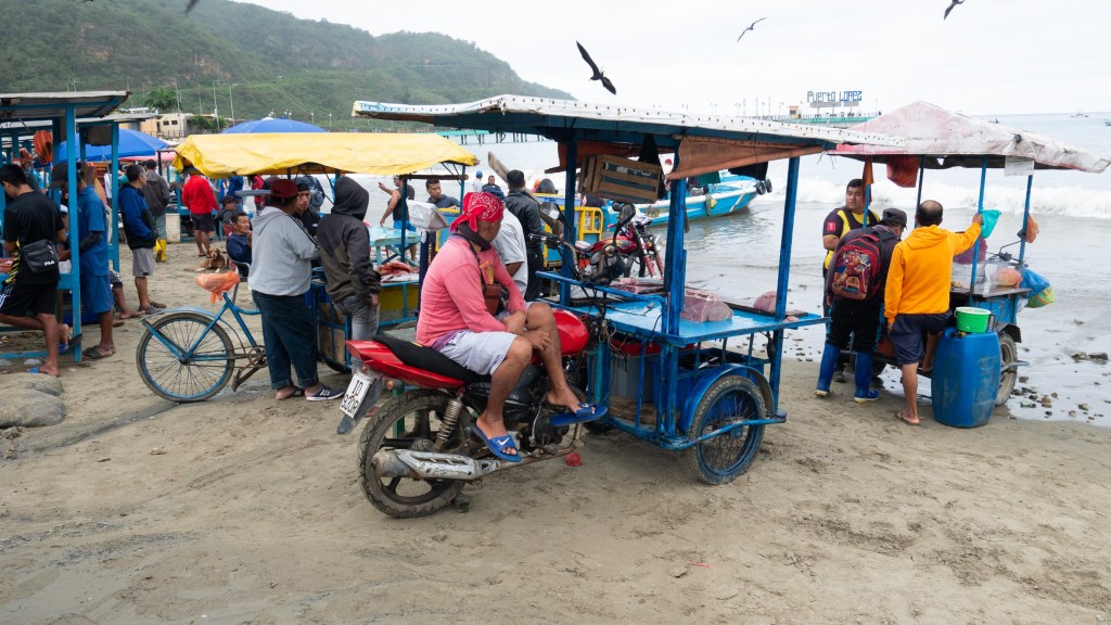 Musique, cris, moteurs et vendeurs en tout genre 24h sur 24 nous auront mit les nerfs à vif, nous écourtons rapidos notre passage ici et partons vite vite pour Puerto Lopez dans l’espoir de trouver (du soleil? Non ça on a comprit que ça n’arriverait pas en cette saison) du silence!