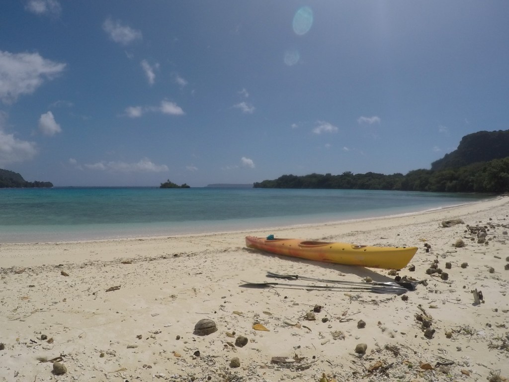 Nous louons un kayak au Turtle Bay Lodge pour nous rendre au trou bleu de Riri.