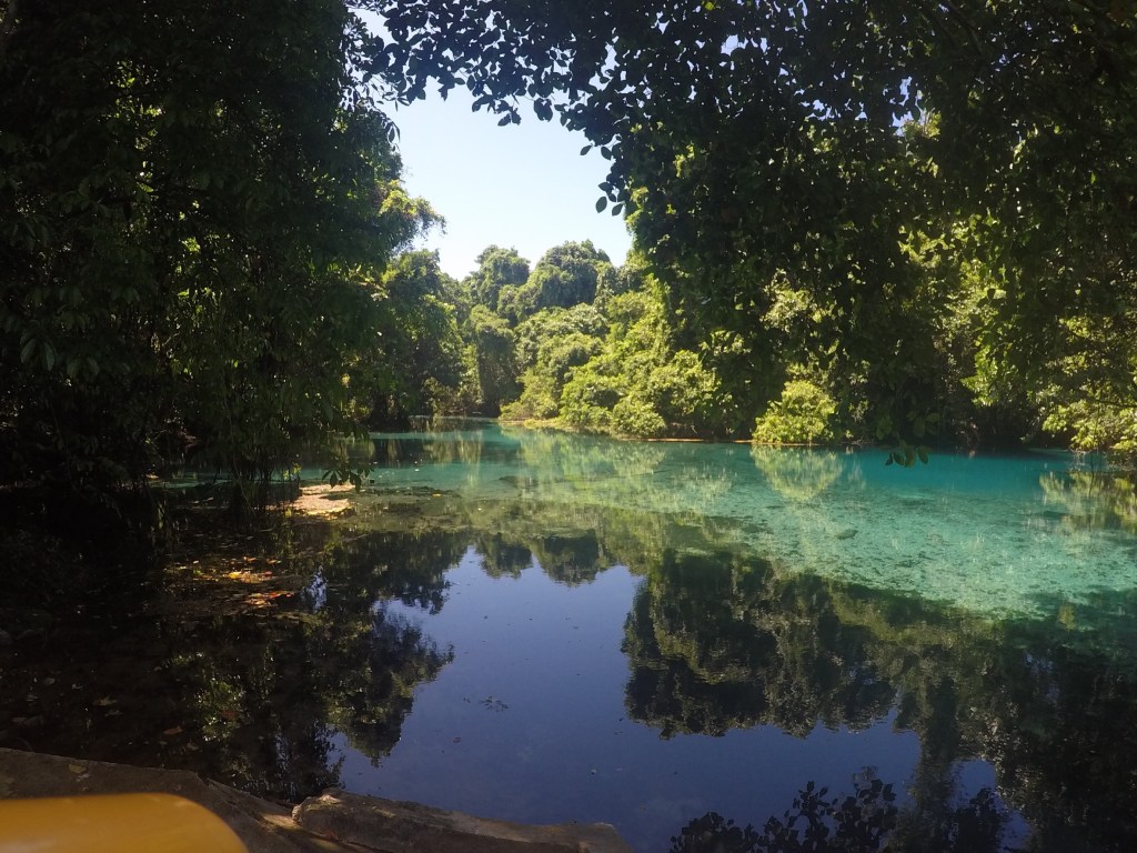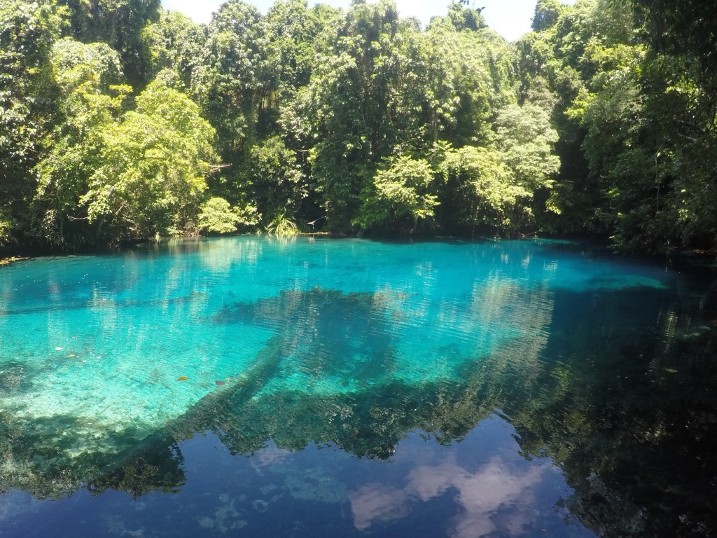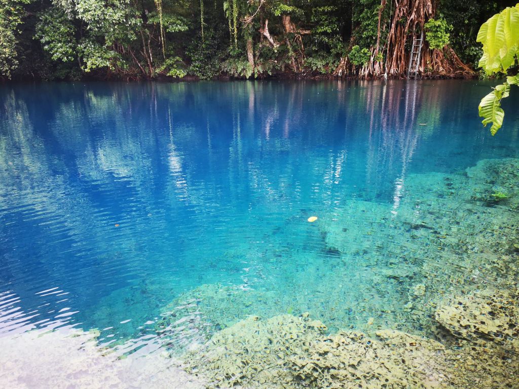 Nous arrivons donc au trou bleu de Matevulu et même avec la pluie, la magie opère.