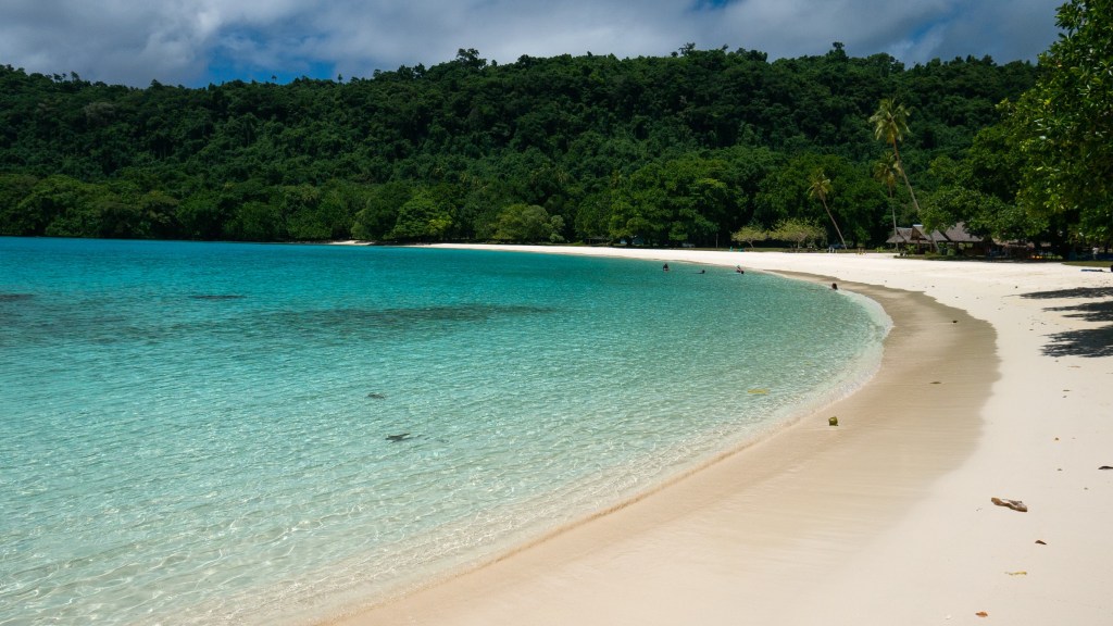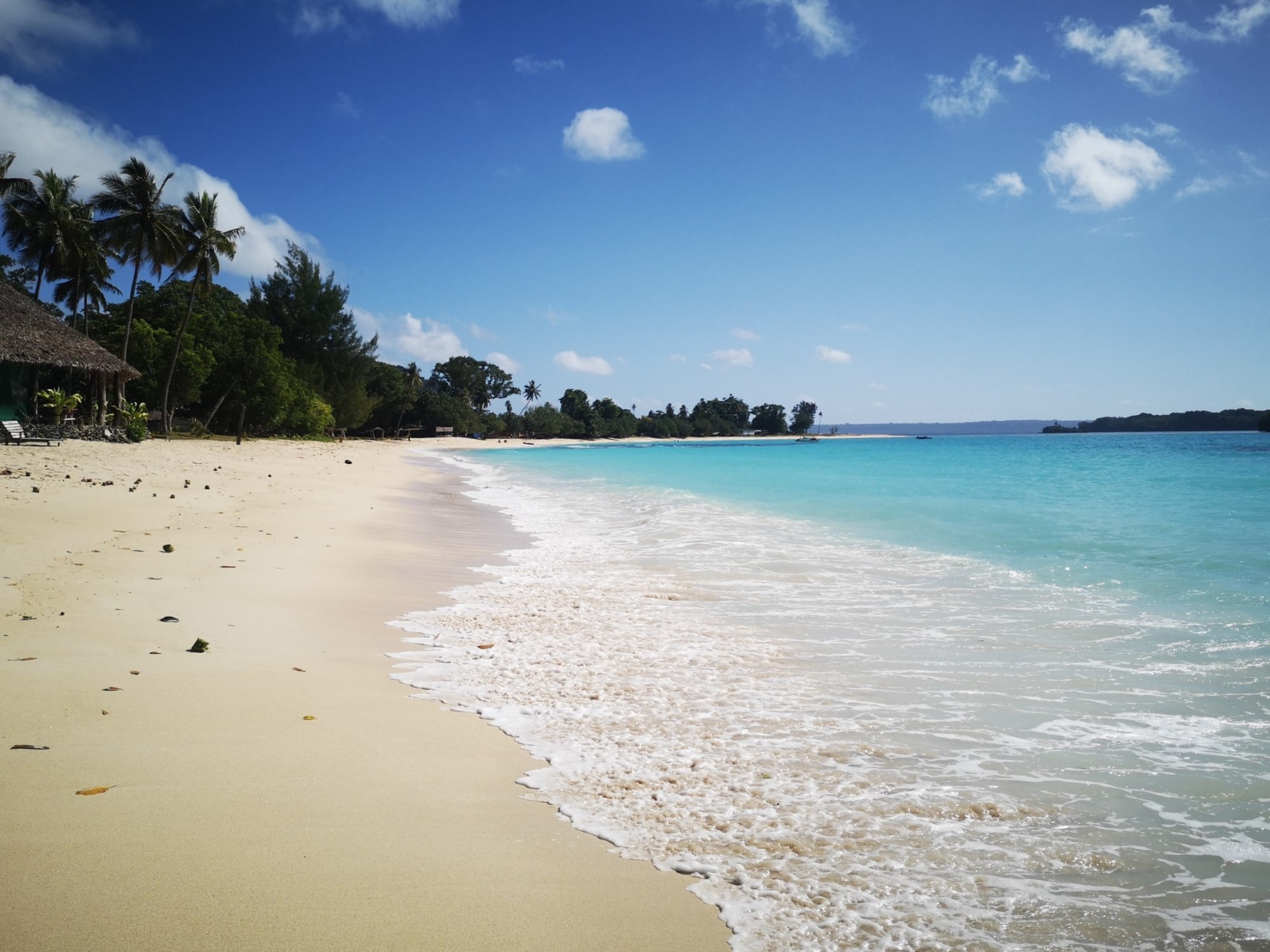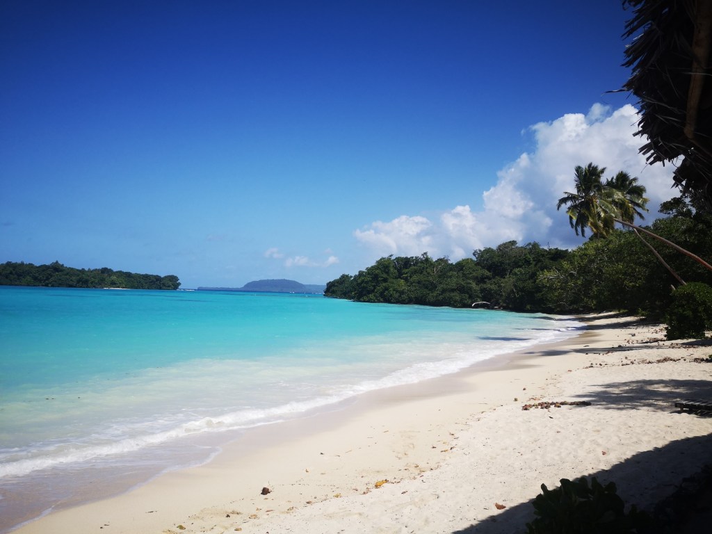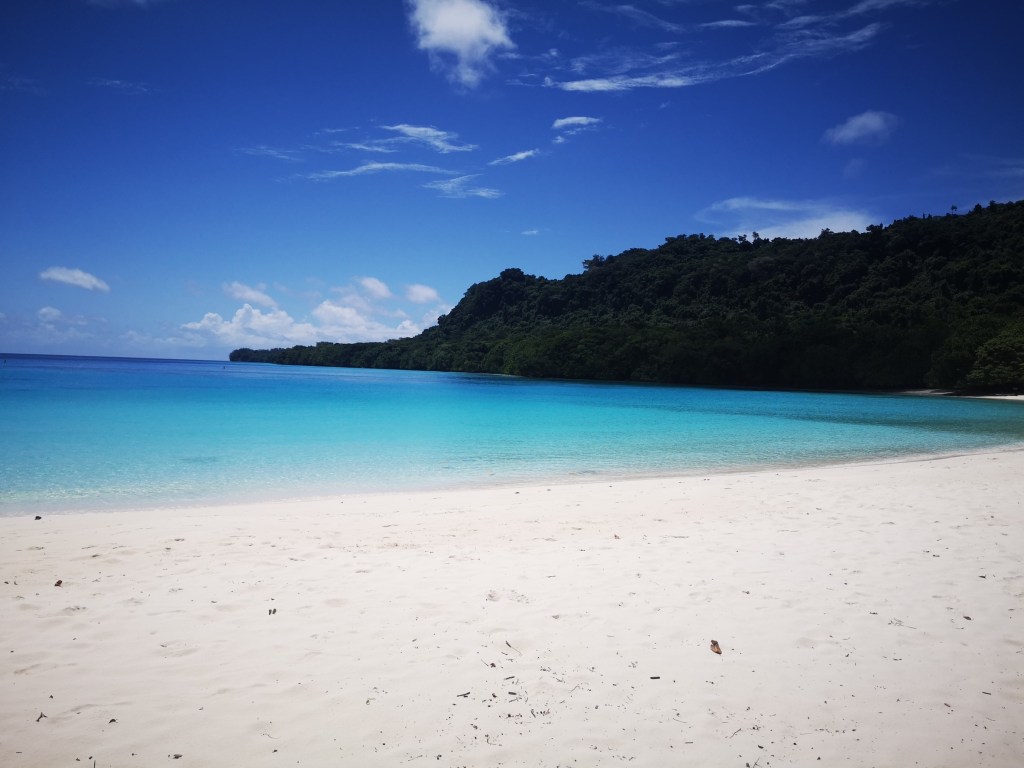 Nous arrivons ensuite à la légendaire plage de Champagne Beach, sable blanc, cocotiers et dégradé bleu turquoise sont au rendez-vous.