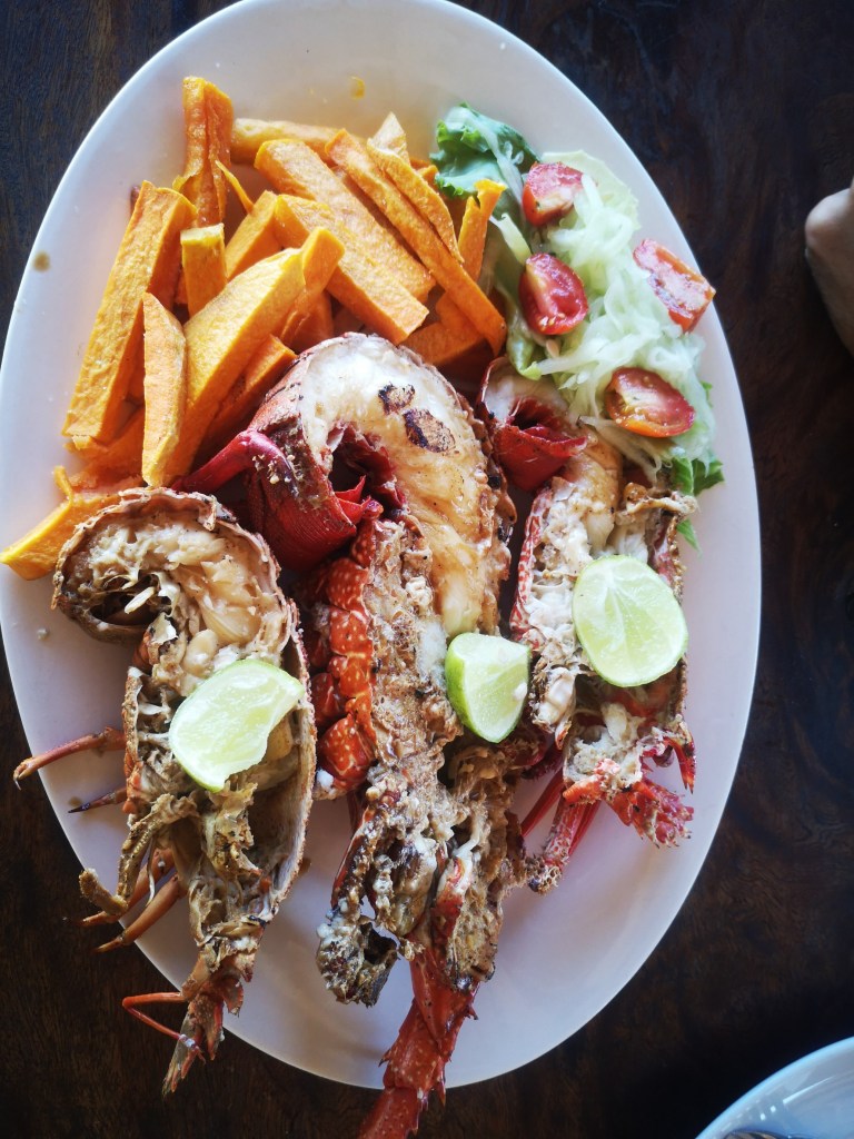 Tout ça avec langoustes, crabes de cocotier et steak de bœuf (réputée meilleure viande du monde) dans l’assiette.