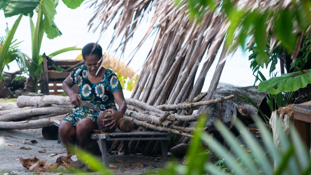 Nous remontons au village par des échelles et pouvons voir la vie du village et la fabrication du kava.