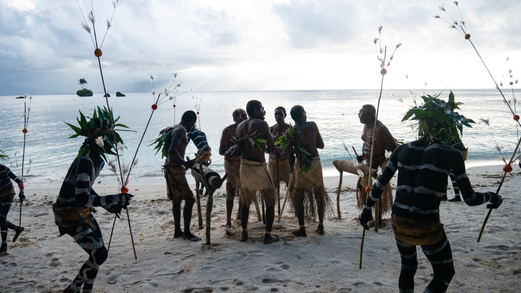 Il nous explique aussi que sa femme étant de l’île de Pentecôte, ils ont suivi la tradition et on envoyé leur fils sur cette île pour se faire circoncire. Ils font ça sans anesthésie et avec un bambou.