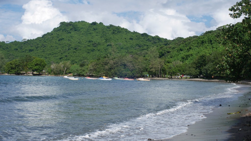 Le lendemain nous devons partir faire une rando sur le volcan et faire du snorkeling l’après-midi tout en rentrant sur l’île de Rah. Il a plu toute la nuit et Serah nous dit que c’est pas possible d’aller au volcan parce que ça glisse. L’eau est trouble pas de snorkeling non plus alors qu’est ce qu’on fait ? eh bien on attend…On attend midi (il est 7h30) que le repas soit servit et ensuite on attend que notre « capitaine » se décide à prendre la mer.