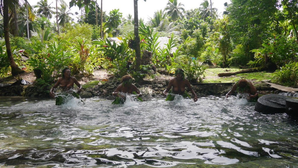 Le lendemain c’est un jour spécial ! On se lève avec le sourire aux lèvres, impatients comme tout d’arriver au village de Mossina où nous avons des femmes qui nous attendent pour nous faire la « Water music » exactement ce pourquoi nous sommes au Vanuatu !