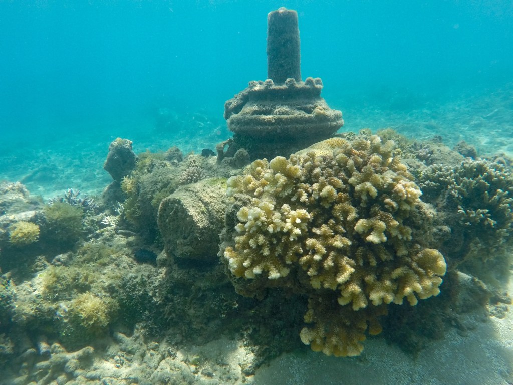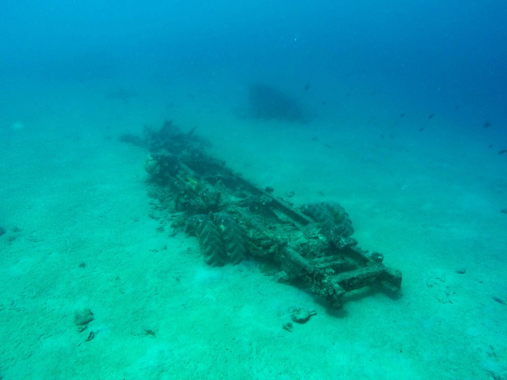 Équipés des masques et tubas, nous allons voir de plus près ces caissons, jeep, remonte palette, épave et beaucoup d’autre chose.