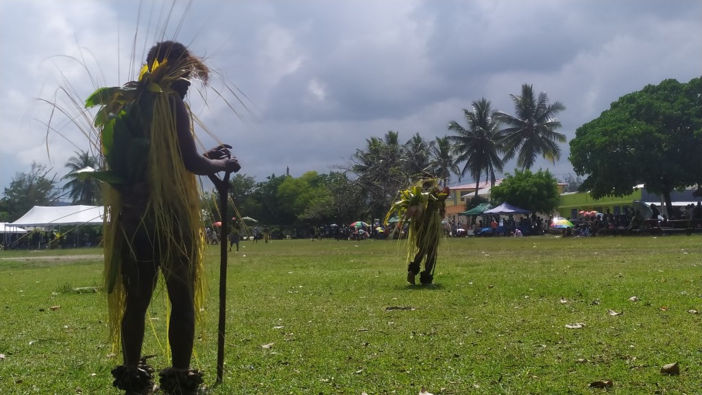 Alors, nous restons tranquilles dans la villa où nous dormons, on en profite pour préparer notre prochaine destination. Puis un enchaînement d’imprévus, annulation d’activité, lessive à refaire, mauvaise gestion de nos repas, nous poussent à mettre le nez dehors et tomber par hasard sur la place principale où est célébré Torba Day. C’est la journée d’indépendance de la région de Torba qui est composé des îles Banks (dont on revient tout juste) et des îles Torres.