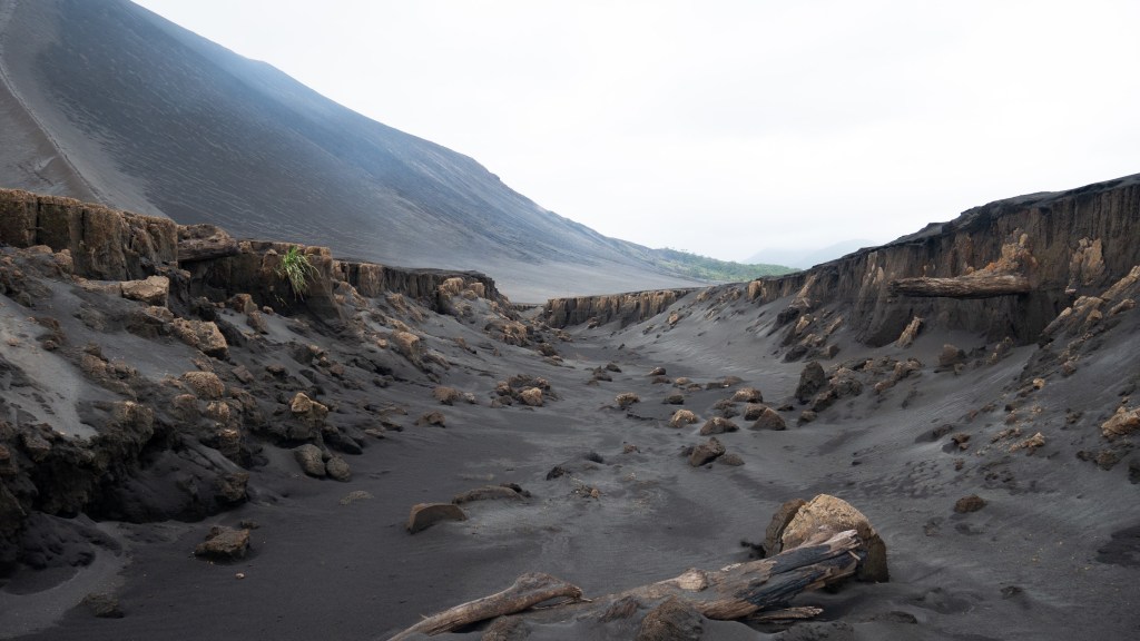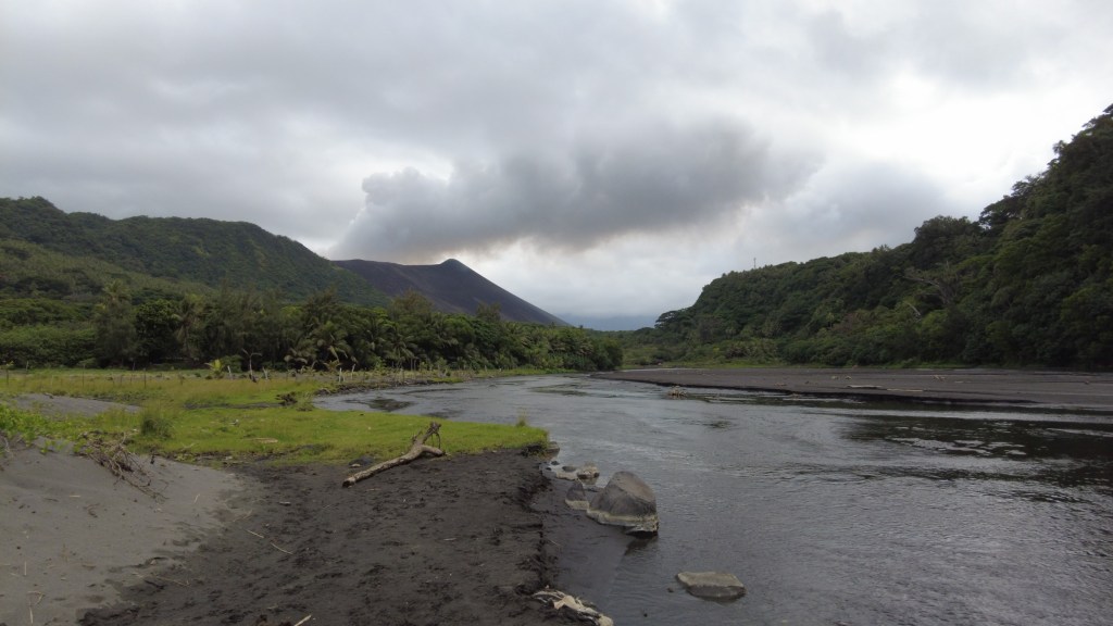 Il fume, beaucoup, il gronde, fort (on pensait que c’était l’orage jusqu’à ce qu’on ait un ciel bleu 😂), les relents de souffre sont fréquents, le sable noir recouvre le sol et contraste avec le vert intense de la végétation luxuriante, pas de doute, nous sommes bien sur Tanna.