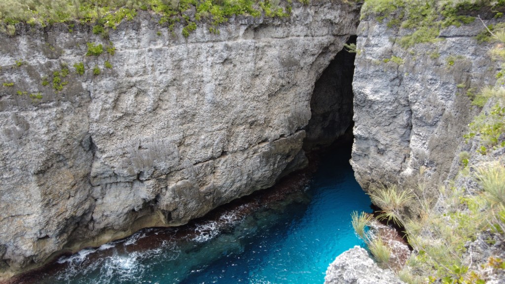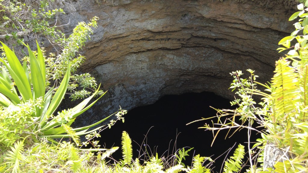 Pour notre dernier jour nous nous aventurons sur une route pas du tout adaptée pour notre voiture 😂. On racle, on surf sur l’herbe et on serre les mâchoires jusqu’au trou de Bone de la leproserie où inexplicablement nous ne nous sentons pas bien, pas très à l’aise dans ce lieu. Cet immense et profond trou au milieu de nulle part semble nous attirer au fond si l’on s’approche trop.