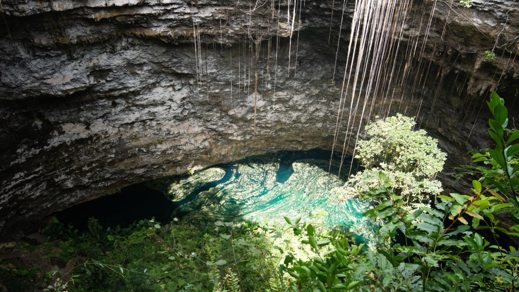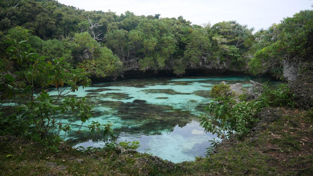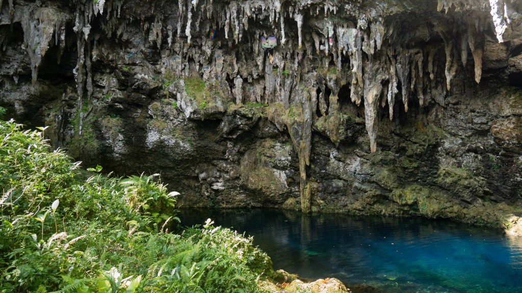 Nous passons ensuite par le trou de Bone qui lui, est plus accueillant avec ses lianes de partout, son écho et son petit îlot au milieu.