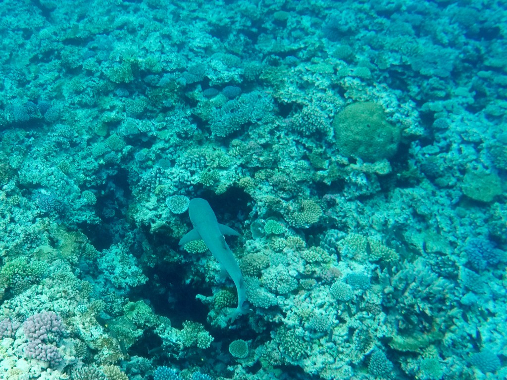 Quelques tortues, gros poissons et peut-être requin (on n’est pas tous vraiment sur que c’en est un^^) passent aussi sous nos pieds.