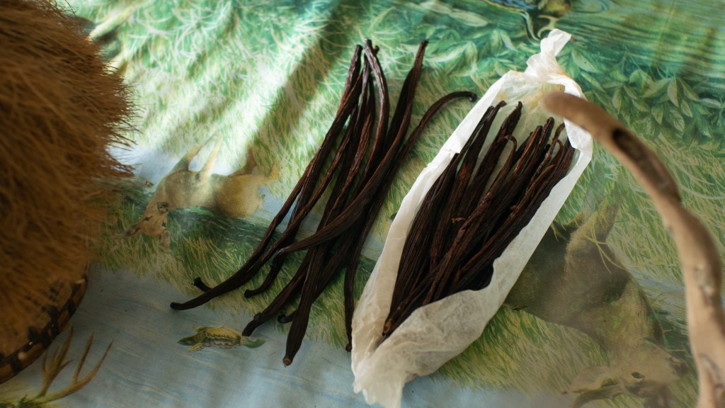 La senteur douce arrivant jusqu’à nos narines, il nous dit qu’il à du oublier de ramasser une gousse et que lors de son explosion elle diffuse ce doux parfum.
