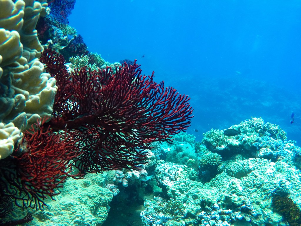 La deuxième nous emerveille beaucoup plus, beaucoup de gorgones, des coraux multicolores, une tortue, des requins et des belles arches.