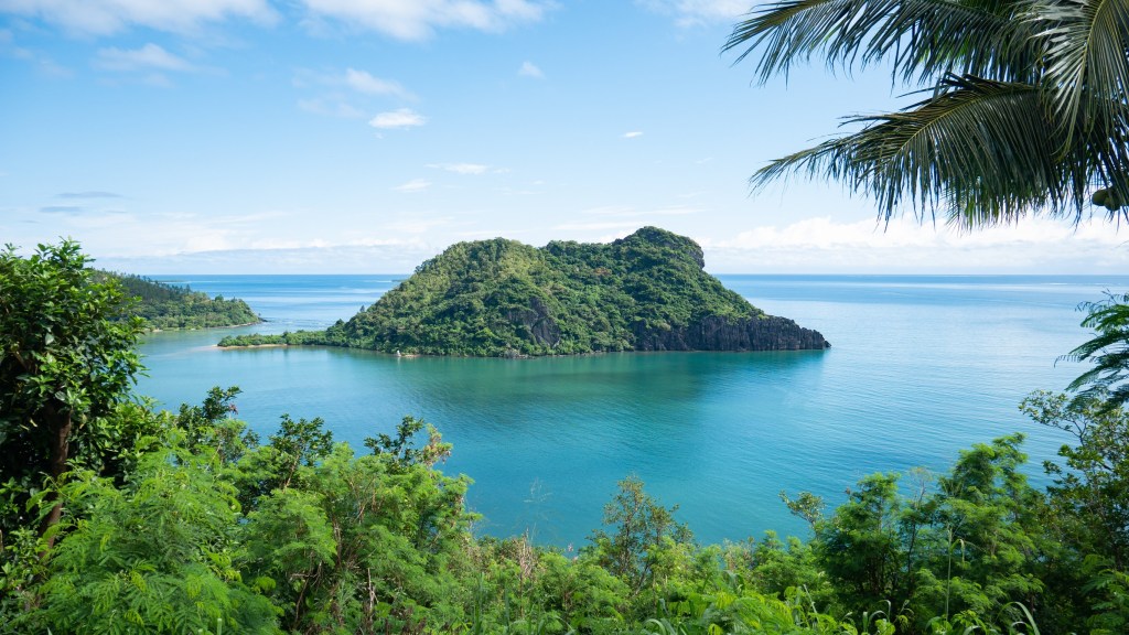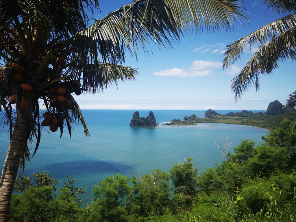 Le vert des montagnes se jetant dans le turquoise de l’eau parsemée de quelques îlots de coraux, on n’a pas les mots devant tant d’émerveillement !!