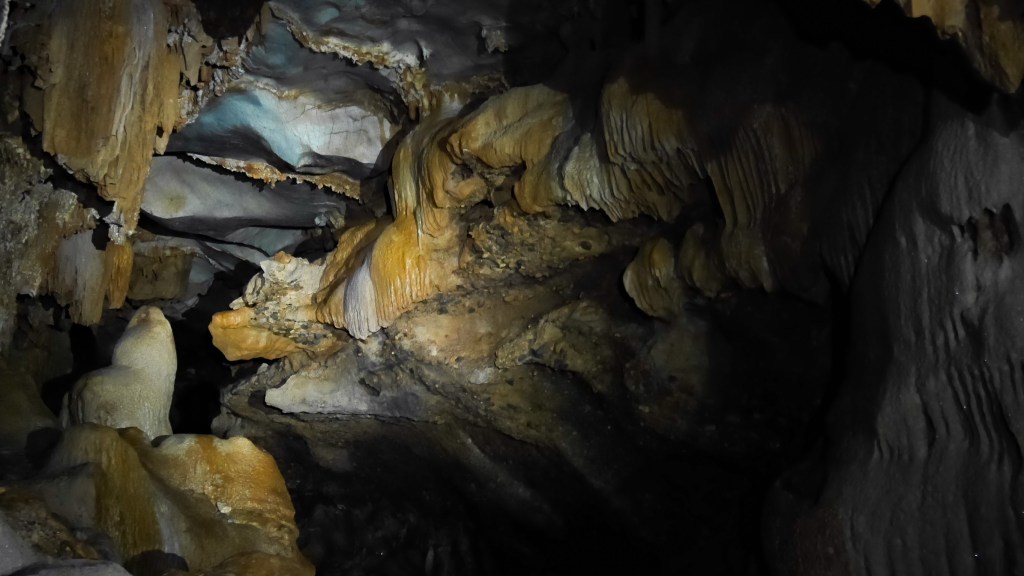 Il y en a deux, la petite, où nous faisons rapidement le tour et qui est plutôt sympa puis la grande dans laquelle nous nous enfonçons pour une bonne demie heure en escaladant, rampant, s’accroupissant.