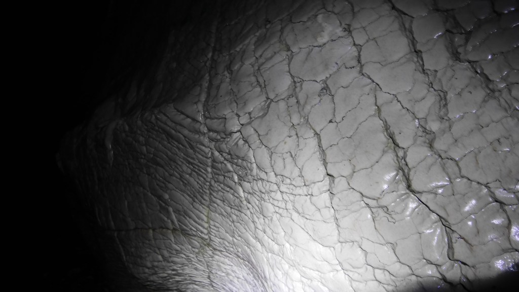 Le noir est total seul quelques tourterelles viennent troubler le silence. Nous n’avons droit d’avancer que sur les premiers 400m mais avons déjà l’impression de pénétré dans les entrailles de la Terre.