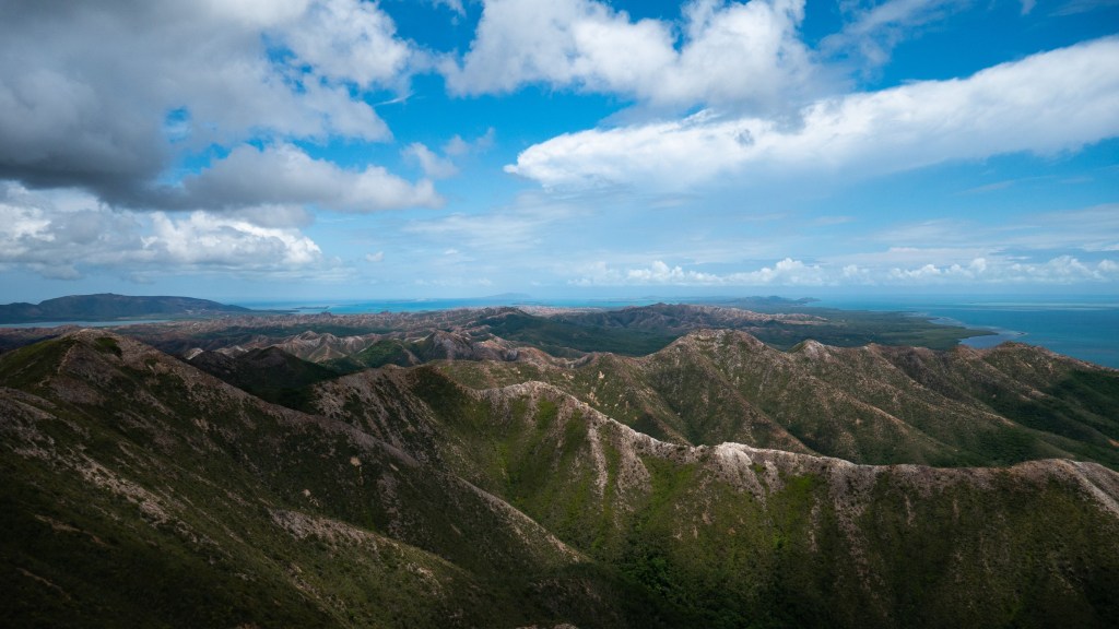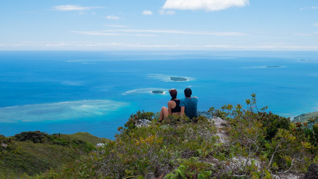 Une petite pause rando, bien qu’exigeante, pour monter au Pic d’Arama, nous offre un panorama superbe avec les crêtes à perte de vue qui trouvent pour seule limite le bleu turquoise du lagon 😍
