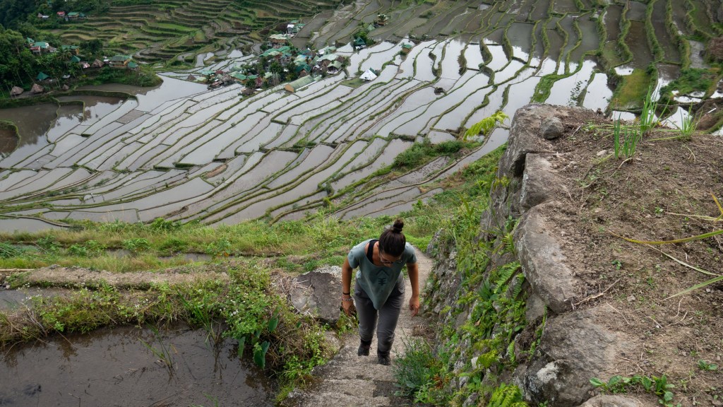 Une fois à Batad, nous devons descendre à pied 30 min au cœur des rizières.