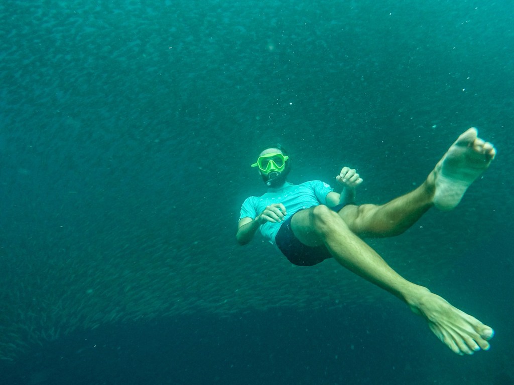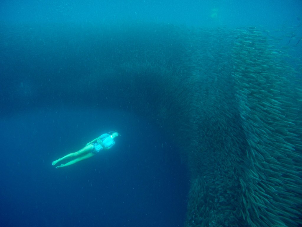 Une nouvelle fois nous retournons aux sardines, mais le matin cette fois-ci et elles sont bien au rendez-vous donc on peut en profiter à nouveau malgré la centaines de touristes dans l’eau.